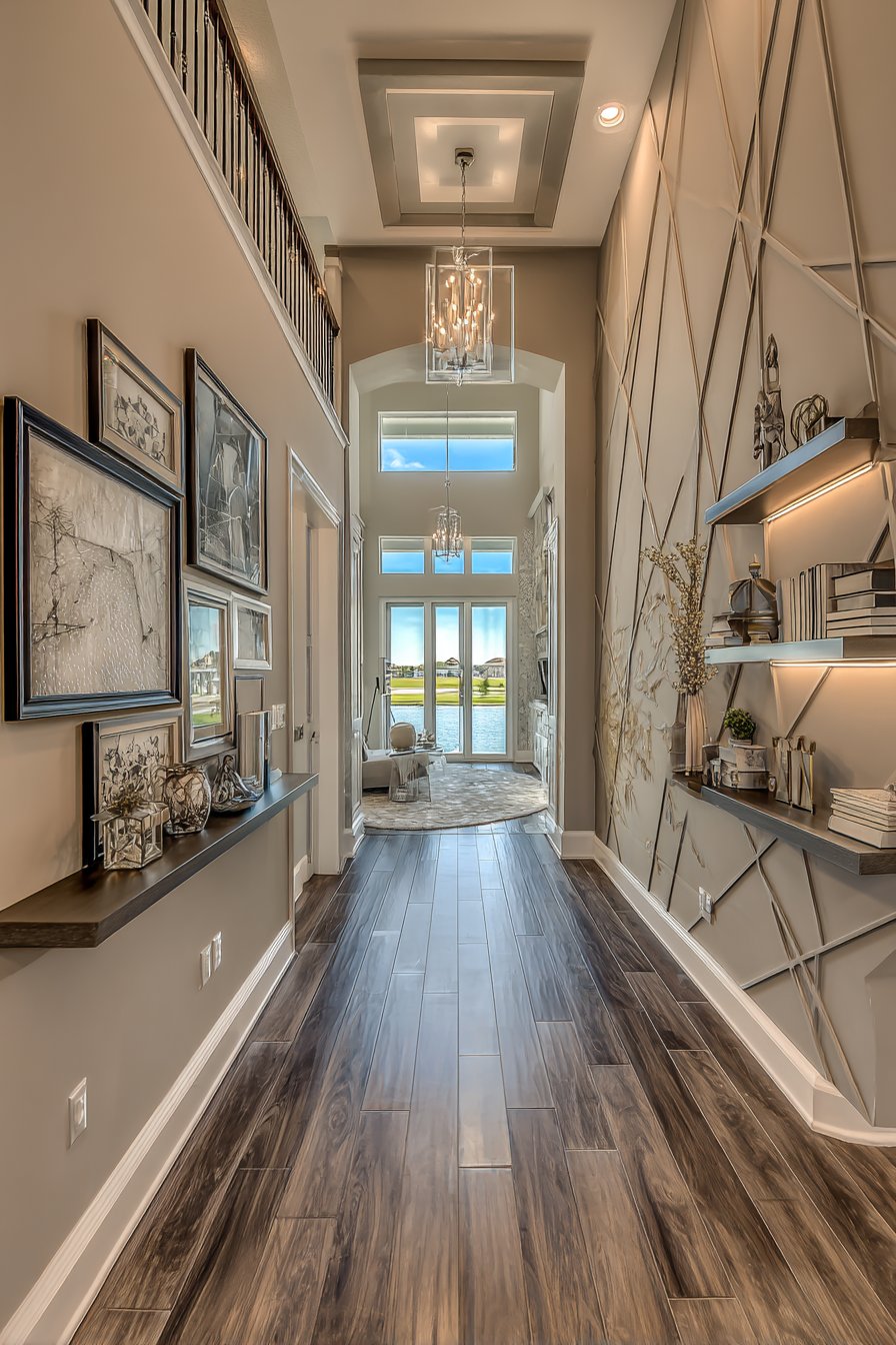 Wainscoting proves particularly effective in entryways and hallways where narrow spaces can feel cramped or boring. The horizontal division created by the chair rail makes walls appear wider while the vertical panel details add visual interest to what would otherwise be featureless surfaces. The traditional detailing also suggests quality construction and attention to detail, creating strong first impressions as guests enter your home.