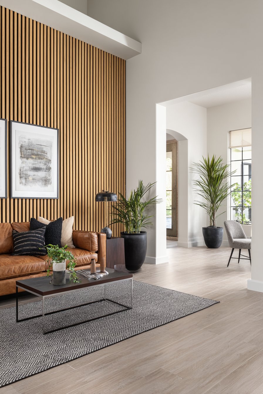 1. Modern Vertical Wood Slat Accent Wall