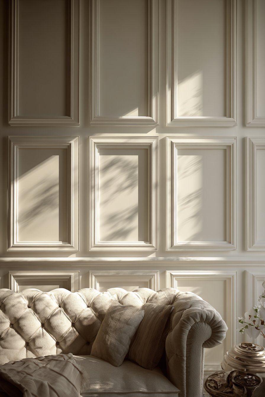Picture frame molding creates the impression of quality construction and classical architecture even in newer homes with flat walls. The dimensional quality catches natural light throughout the day, creating subtle changes in how the wall appears—more pronounced shadows in strong light, softer and more uniform in diffused light. This living quality adds richness to spaces that static flat walls cannot achieve.