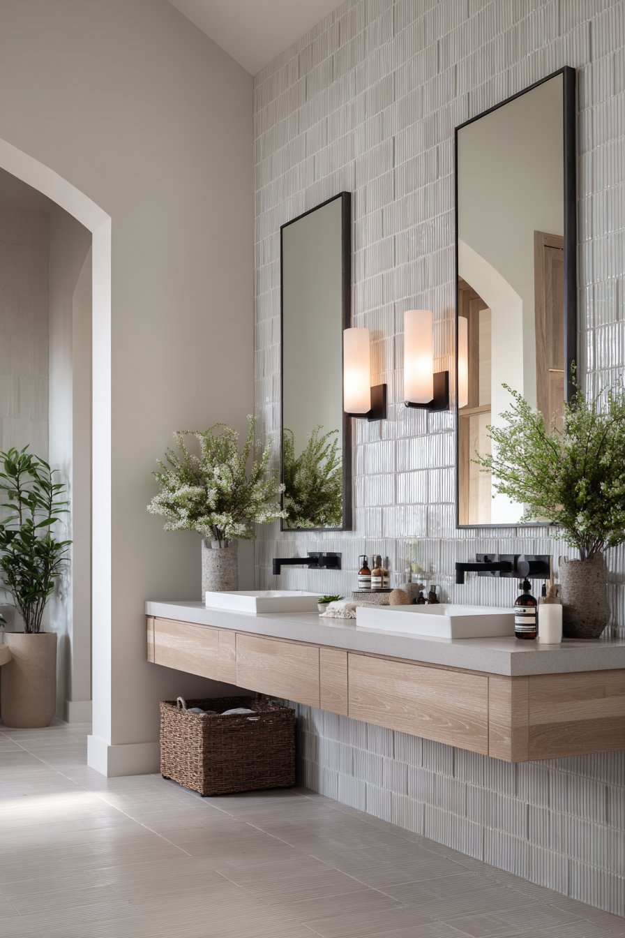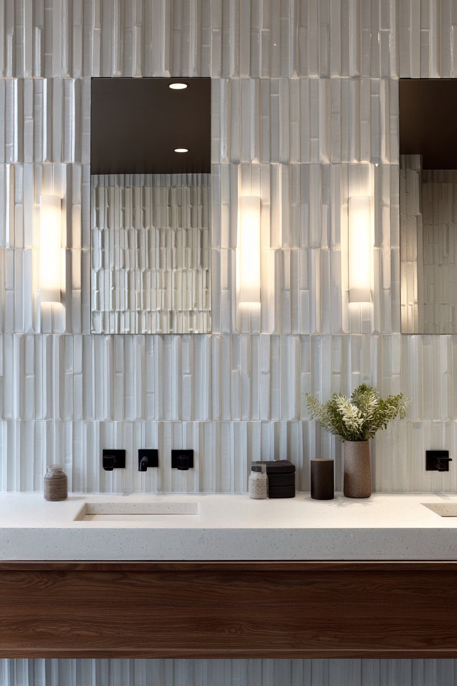 Key Design Tips: Use tile spacers consistently for perfectly aligned vertical lines—any deviation will be highly visible. Purchase at least 10% extra tile to account for cuts and potential breakage. Start layout from most visible corner or centered on prominent feature like vanity. Choose rectified tiles with precisely cut edges for tightest, most professional-looking grout lines. Mix tiles from multiple boxes during installation to blend any color variations. Use high-quality polymer-modified thinset for superior adhesion in wet areas. Allow thinset to cure fully before grouting (typically 24-48 hours). Seal grout in shower areas to prevent staining and mildew. Consider subway tile format beyond standard 3×6—larger formats like 4×12 or 6×12 create more dramatic vertical effect.