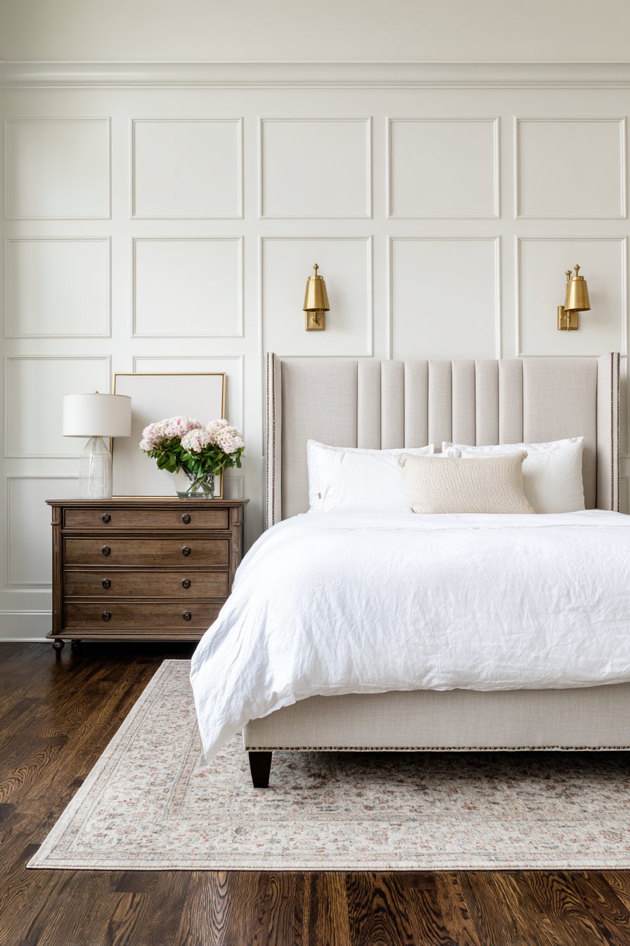 Beyond aesthetics, upholstered walls offer significant practical benefits. The fabric and padding provide excellent sound absorption, creating a quieter, more peaceful sleeping environment—particularly valuable in homes with thin walls or noisy surroundings. The soft surface also adds warmth, both visual and actual, making the room feel more comfortable during colder months. This treatment works especially well in primary bedrooms where creating a restful, spa-like retreat is the primary goal.