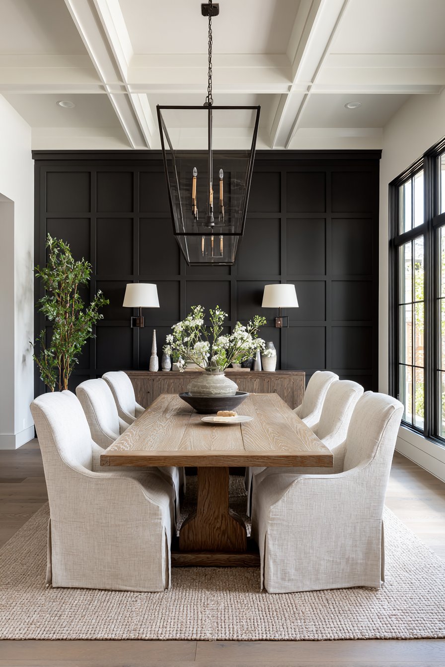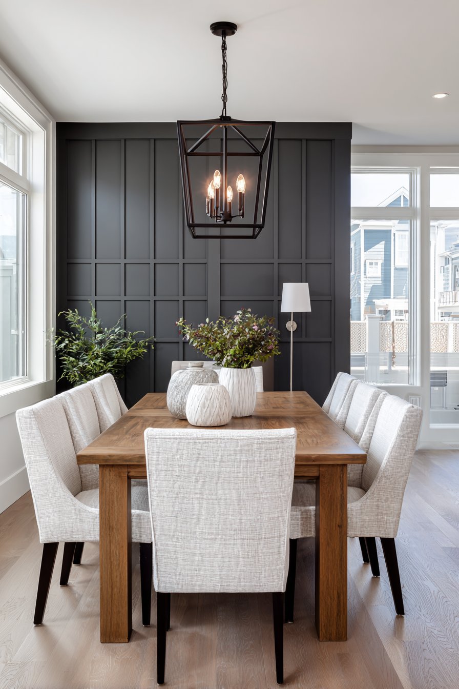 The beauty of board and batten lies in its versatility and the way it can adapt to both traditional and contemporary interiors. While the technique itself is centuries old, the color choice and proportion of the battens can dramatically shift the aesthetic. Deep charcoal creates a modern, dramatic backdrop particularly effective in dining rooms where you want to establish a sense of occasion and formality. The vertical emphasis makes walls appear taller while adding architectural interest that makes even new construction feel more established and thoughtfully designed.