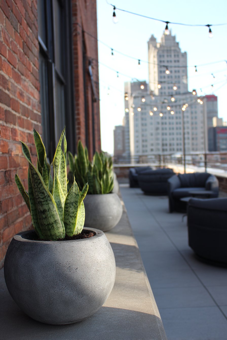 Concrete planters represent the quintessential industrial material—raw, substantial, and unapologetically contemporary. Housing architectural plants like snake plants and ZZ plants, these containers create strong geometric silhouettes. The plants’ structural forms and low-maintenance requirements align perfectly with industrial design principles of form-follows-function. Their tolerance for varying light conditions and infrequent watering makes them ideal for busy urbanites.