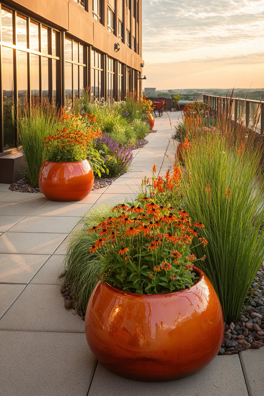 - Invest in high-quality planters with clean lines and durable finishes that will age gracefully