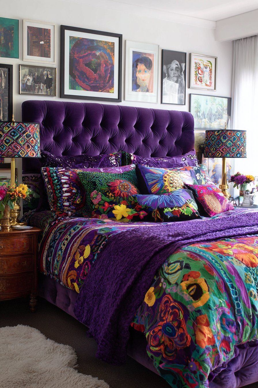 - Layer bedding in varying shades of the same color family to create sophisticated depth