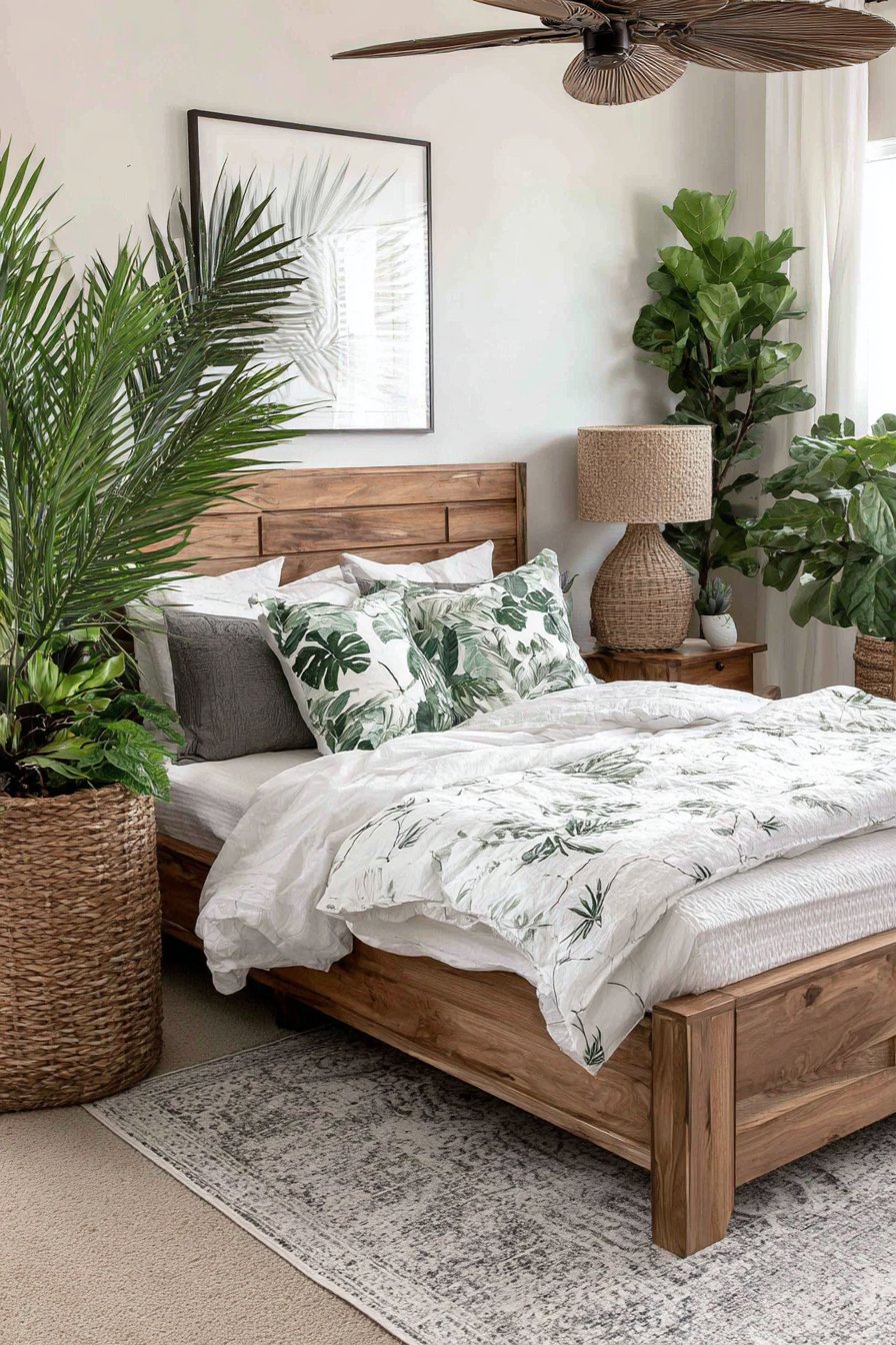 - Add substantial tropical plants that thrive in bedroom light conditions
