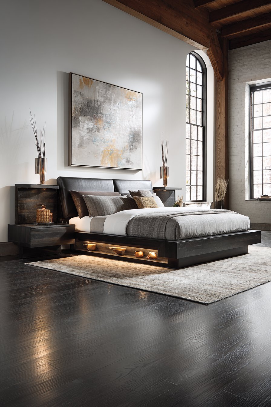 - Select a platform bed with built-in storage drawers to maximize functionality without compromising the minimalist aesthetic