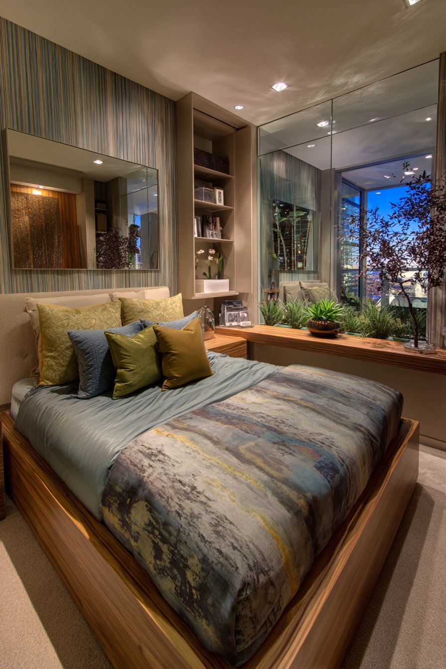 - Position bed to maximize views while maintaining privacy from neighboring buildings
