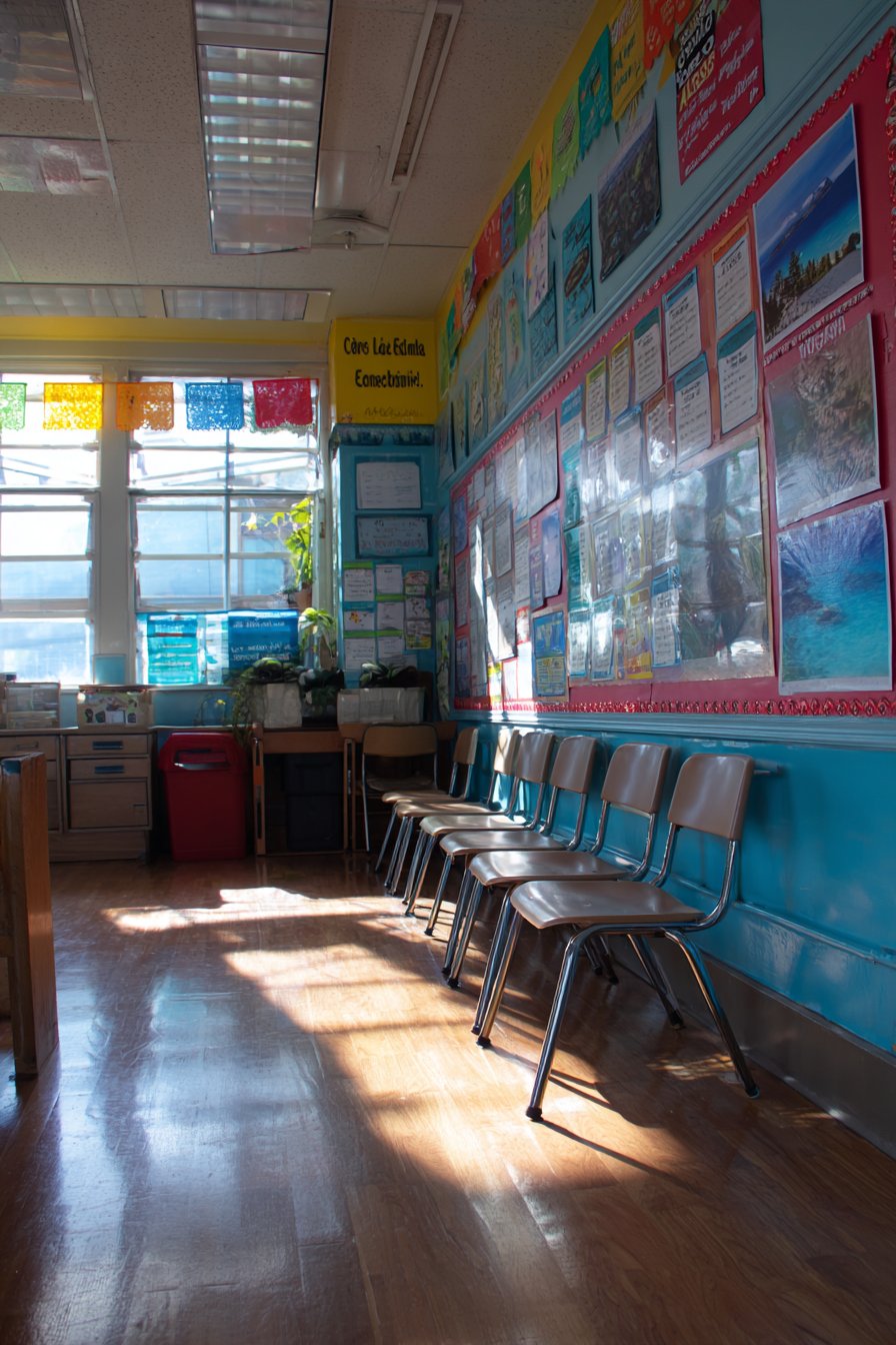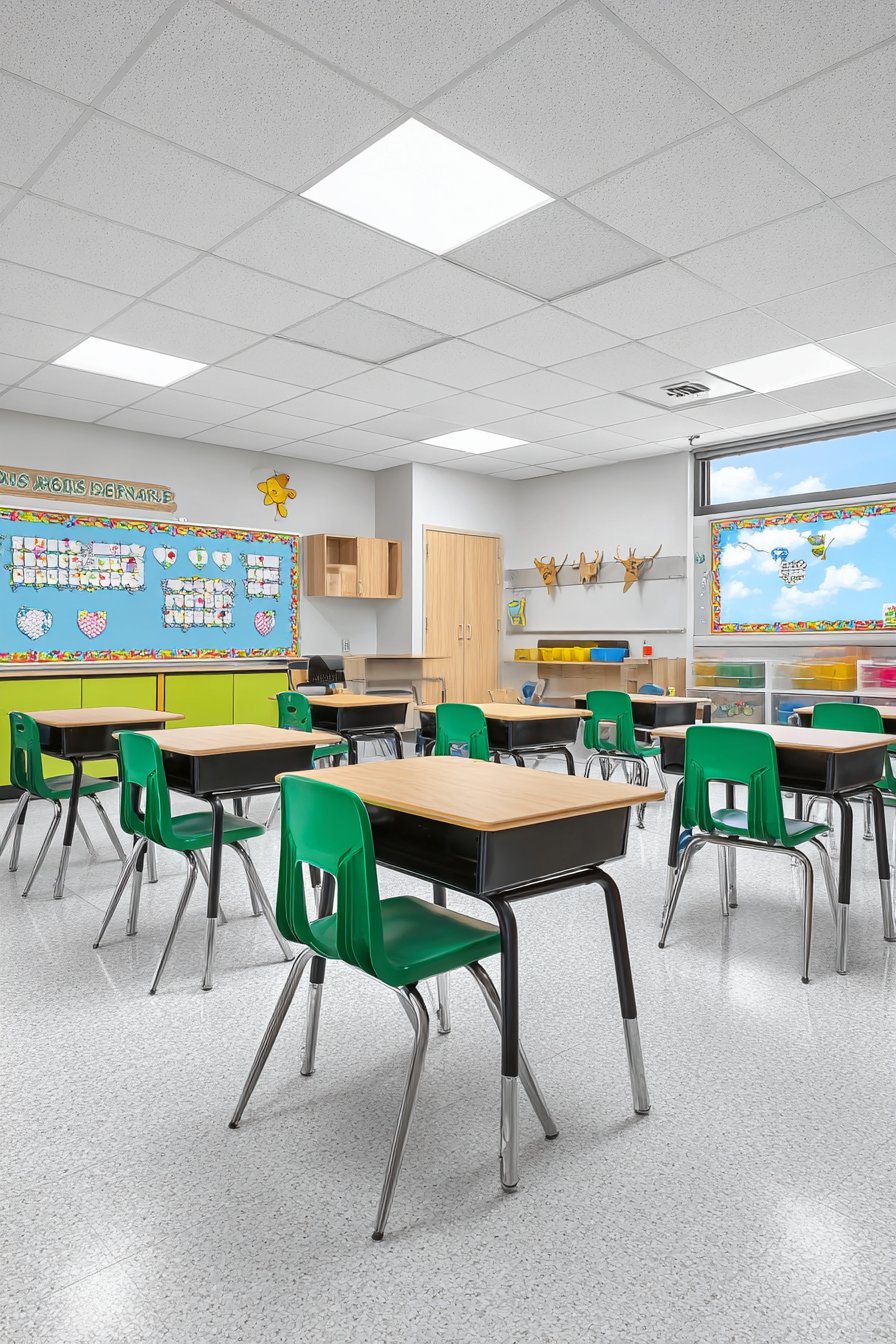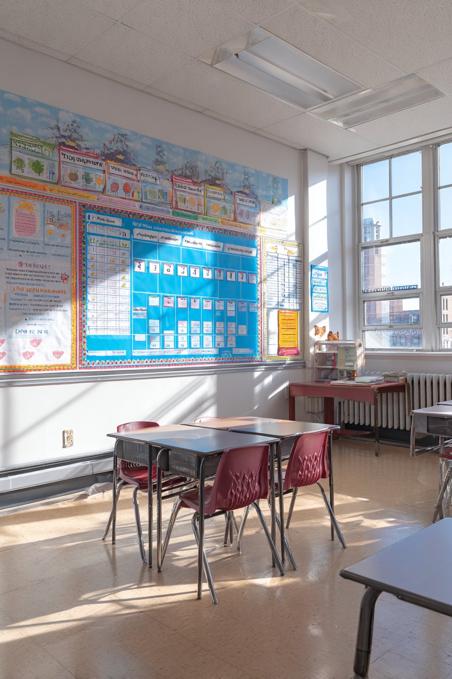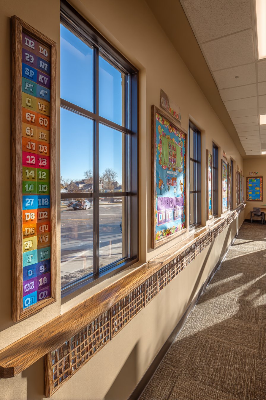 The uplifting imagery, rainbow colors, and encouraging typography create an optimistic learning atmosphere while a “Not Yet” bulletin board celebrates progress toward goals that haven’t been fully achieved, reframing current limitations as temporary states rather than permanent conditions. Natural window light generates an optimistic atmosphere that enhances the positive messaging throughout the school day. The empowering educational messages communicate fundamental beliefs about learning potential, the value of effort, and the growth possible through persistence.