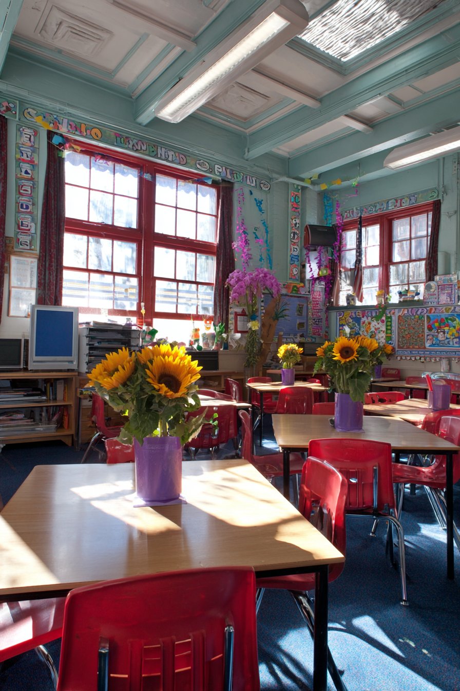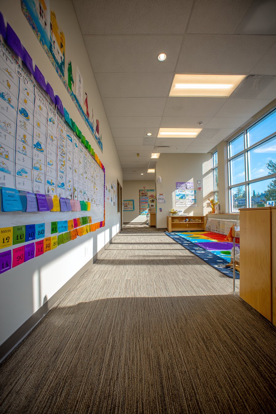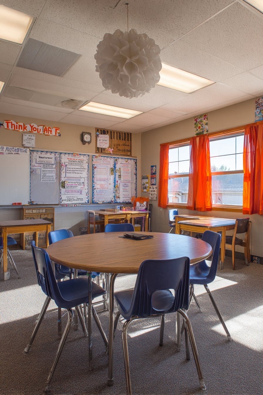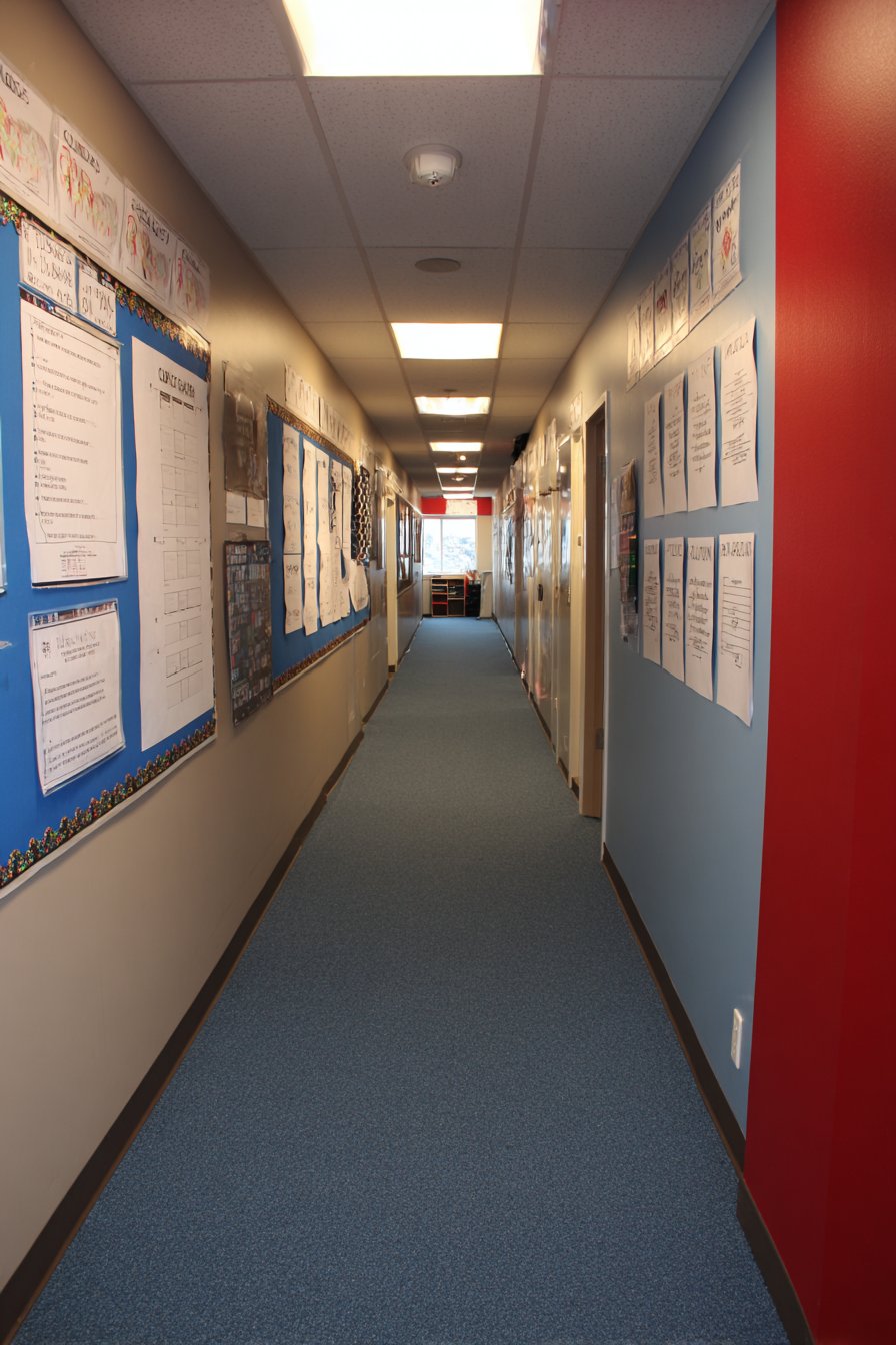 The uplifting imagery, rainbow colors, and encouraging typography create an optimistic learning atmosphere while a “Not Yet” bulletin board celebrates progress toward goals that haven’t been fully achieved, reframing current limitations as temporary states rather than permanent conditions. Natural window light generates an optimistic atmosphere that enhances the positive messaging throughout the school day. The empowering educational messages communicate fundamental beliefs about learning potential, the value of effort, and the growth possible through persistence.