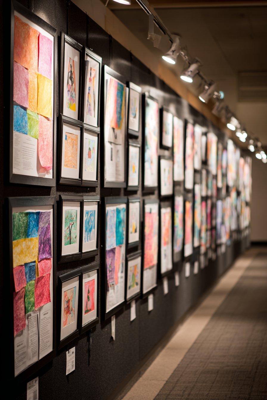 - Use high-quality mounting techniques like double-sided tape or staples to ensure work remains securely attached