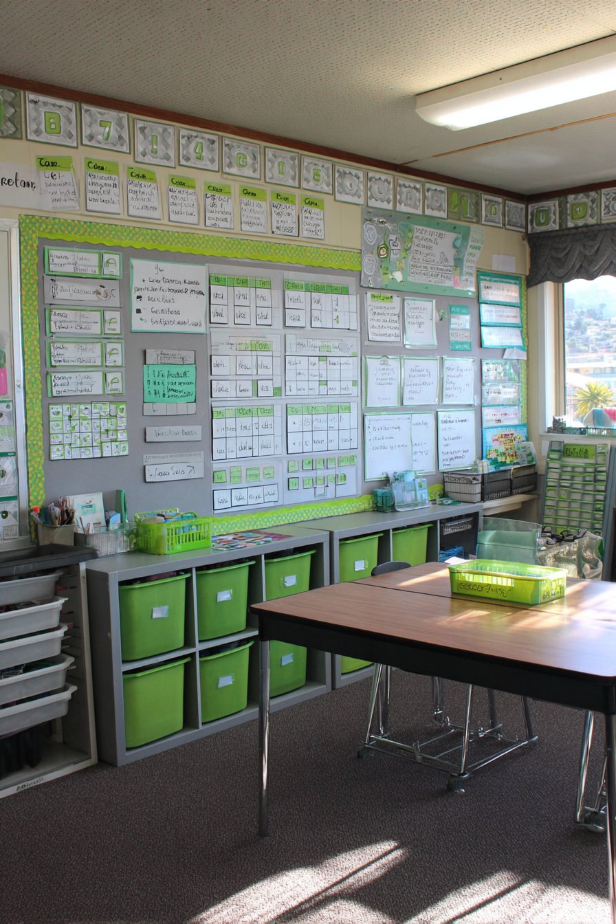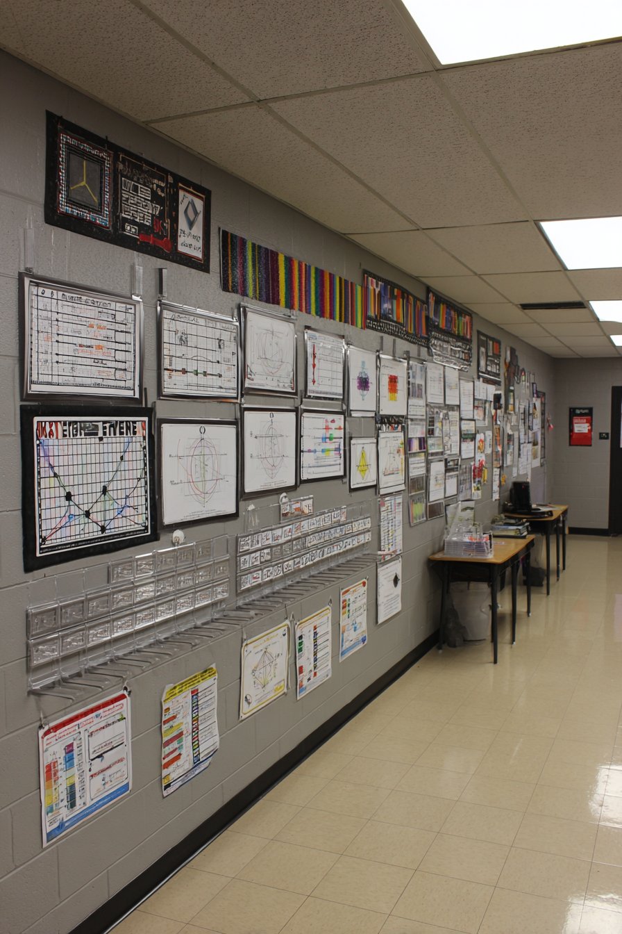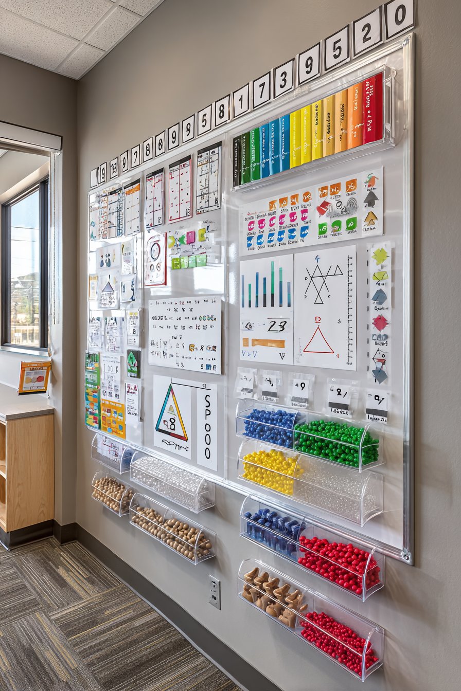 - Incorporate manipulatives on nearby shelving so students can physically model concepts displayed on the wall