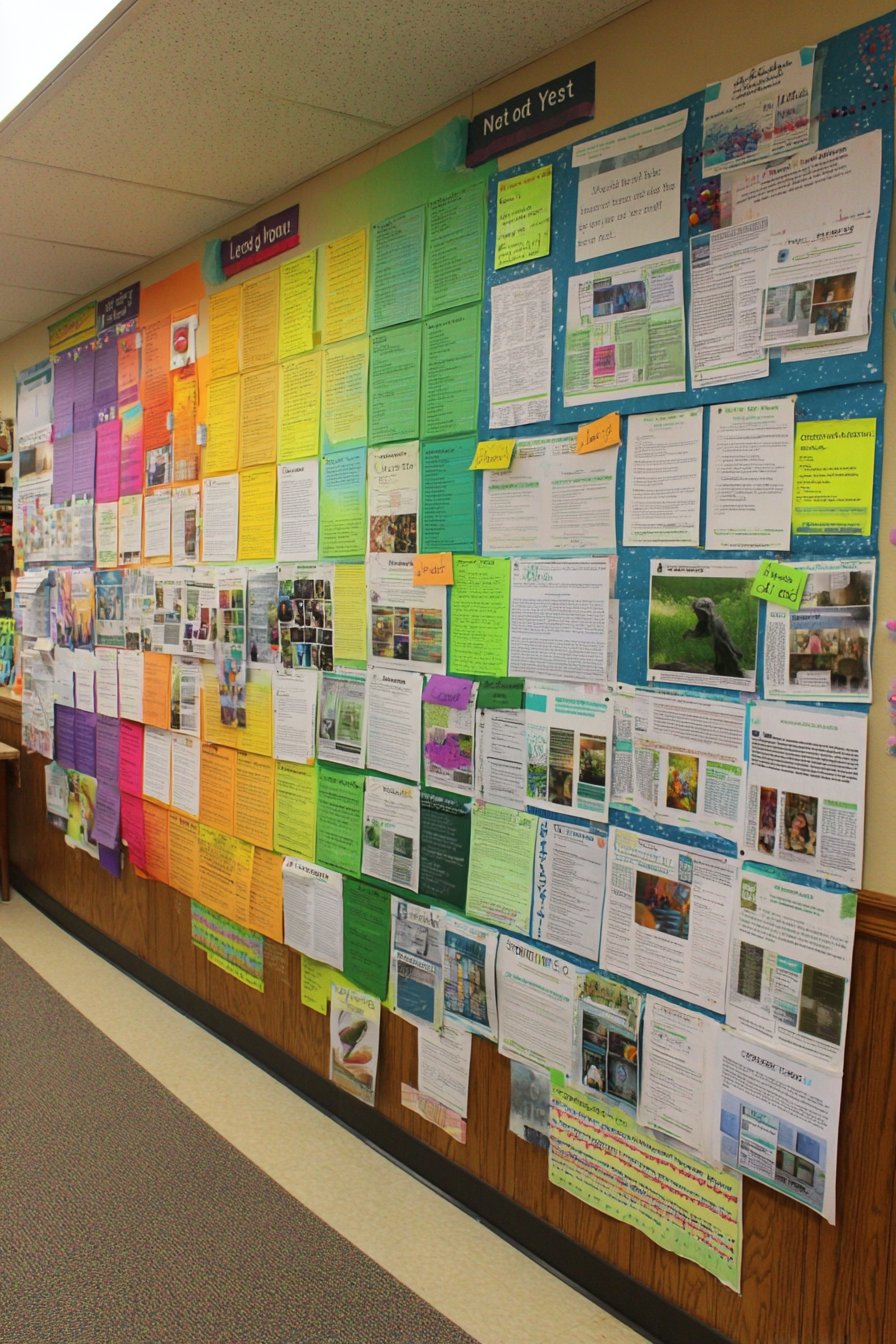 This educational class wall decoration idea reflects current best practices in assessment and instruction, including making learning targets visible, providing clear success criteria, involving students in assessing their own learning, and celebrating mastery when it’s achieved. The ongoing nature of the display—with regular updates as learning objectives change—creates rhythm and expectation around the learning cycle while the accessible reference supports students in understanding their own learning journey.