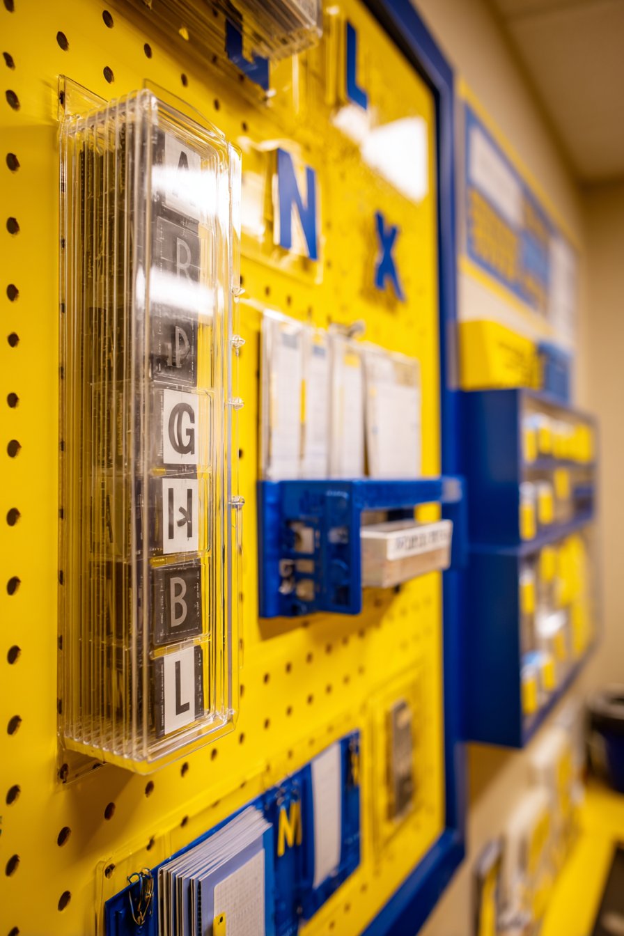 Balanced classroom lighting eliminates glare on the plastic pockets while ensuring clear visibility of both words and accompanying images. The moveable nature of this system transforms vocabulary learning from passive exposure to active engagement—students physically interact with words, creating stronger neural pathways and deeper understanding. The yellow backing serves both aesthetic and functional purposes, creating visual excitement while ensuring maximum contrast for optimal readability.