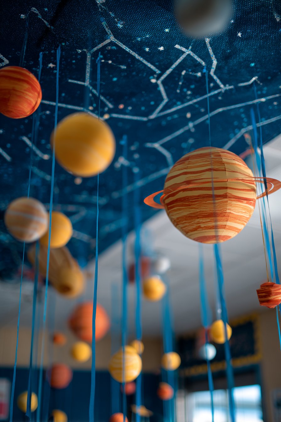 - Use fishing line or clear thread to suspend planets, creating the illusion of floating in space