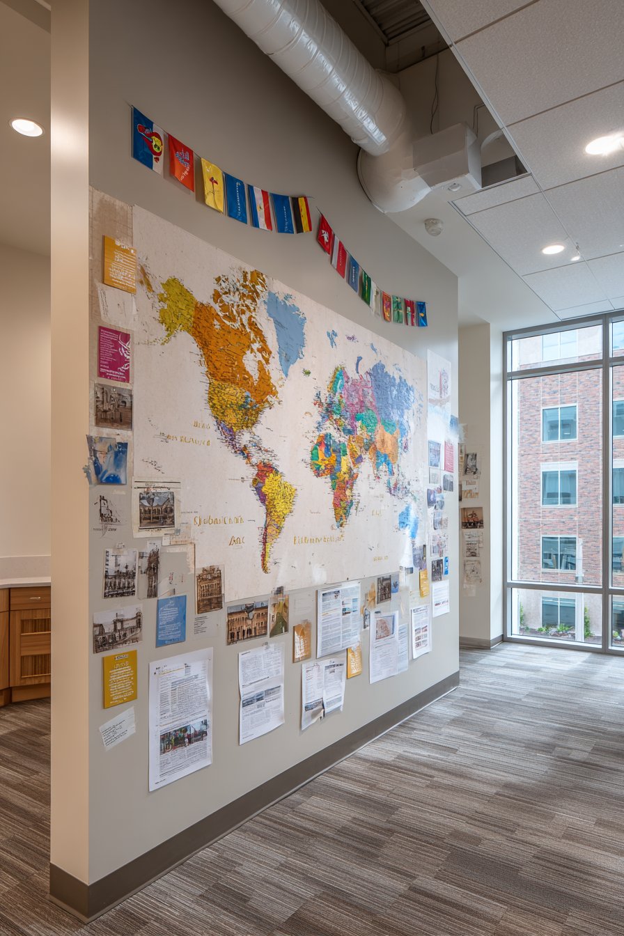 This display type grows more valuable throughout the school year as the map fills with pins, student research accumulates, and connections between various countries and cultures become apparent. The collaborative nature—where every student contributes to the collective geographic knowledge—builds classroom community while teaching that global awareness develops through shared learning rather than individual expertise. The prominence of this display communicates that understanding our world is a core educational priority.