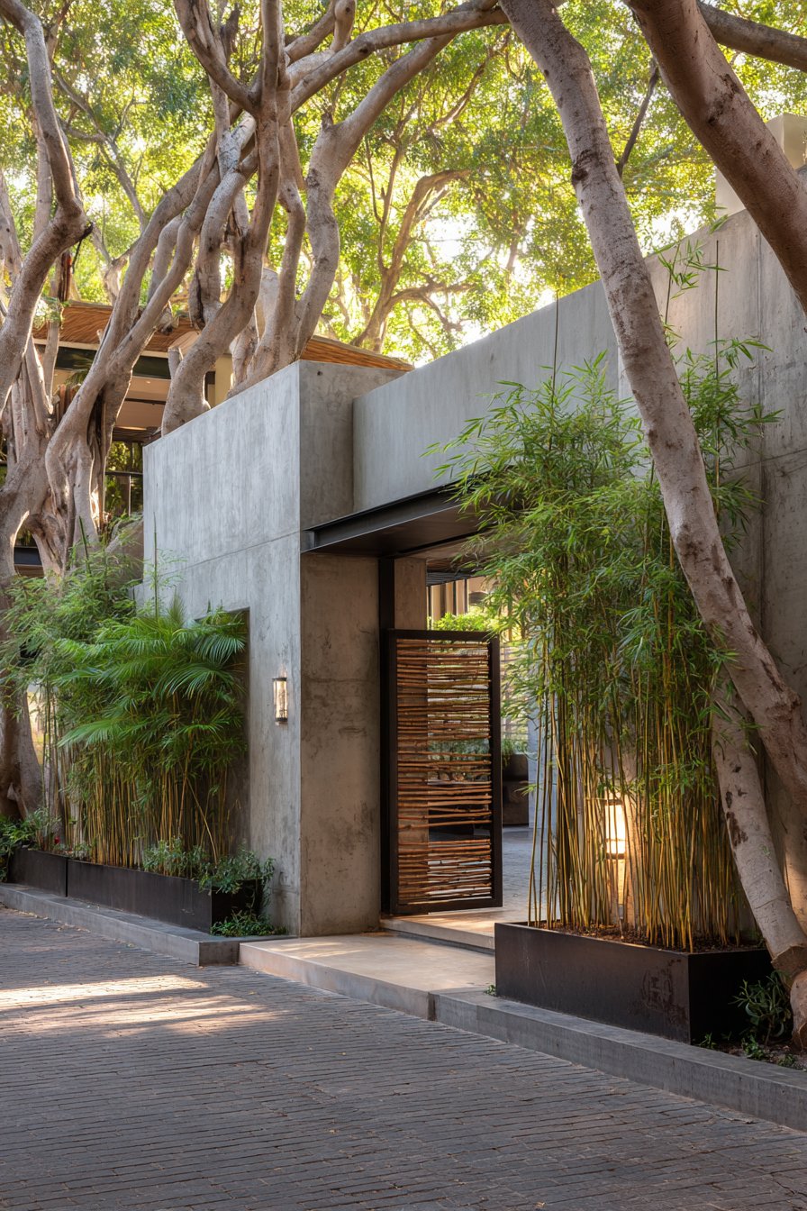 The minimal ornamentation in this design is entirely intentional. Industrial aesthetics reject applied decoration in favor of letting materials and structure speak for themselves. The concrete’s natural grey tone, the texture created by construction processes, and the straightforward functionality of drainage and gate hardware provide all the visual interest needed. This restraint creates a powerful architectural statement that communicates confidence and contemporary sensibility.