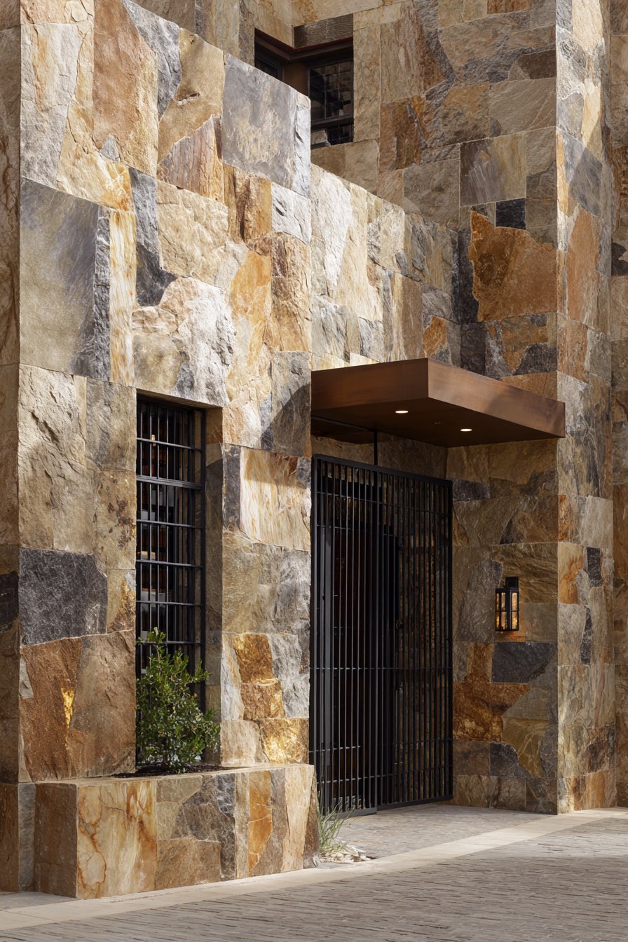 2. Natural Stone Cladding with Rustic Character
