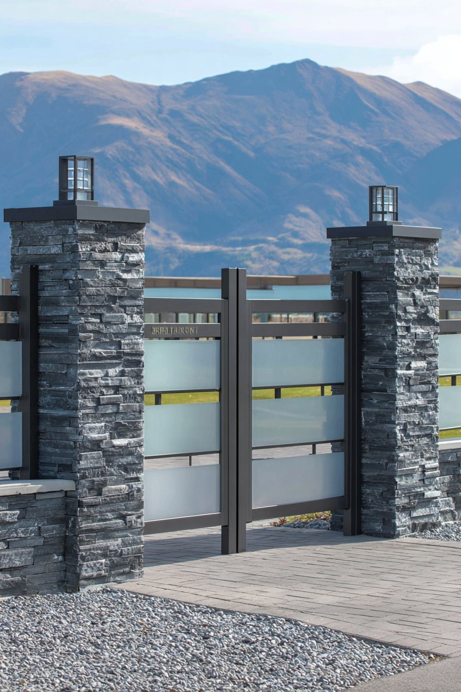 • Use tempered or laminated frosted glass in gate panels for safety and security