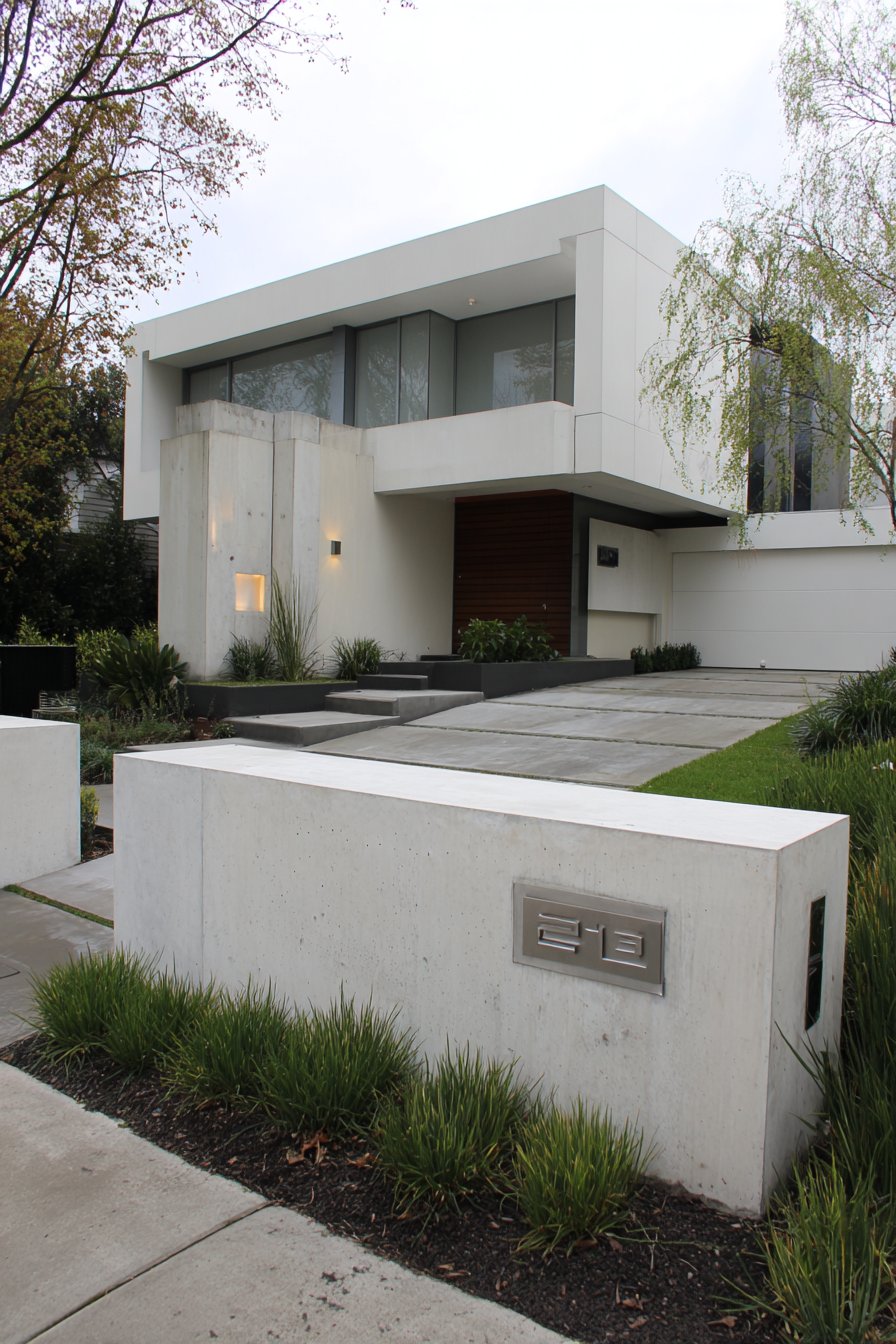 The integrated house numbers in brushed stainless steel provide the only decorative element, and their restraint is entirely intentional. Mounted flush with the wall surface, these numbers function as subtle jewelry—present and purposeful but never competing with the wall’s serene simplicity. The brushed finish prevents harsh reflections while ensuring the numbers remain legible in various lighting conditions, and the stainless steel’s durability ensures they’ll maintain their appearance for decades.