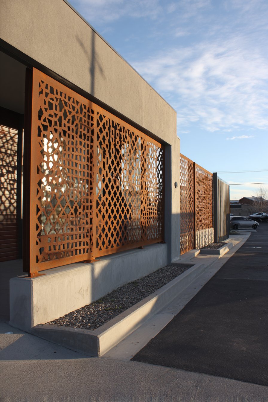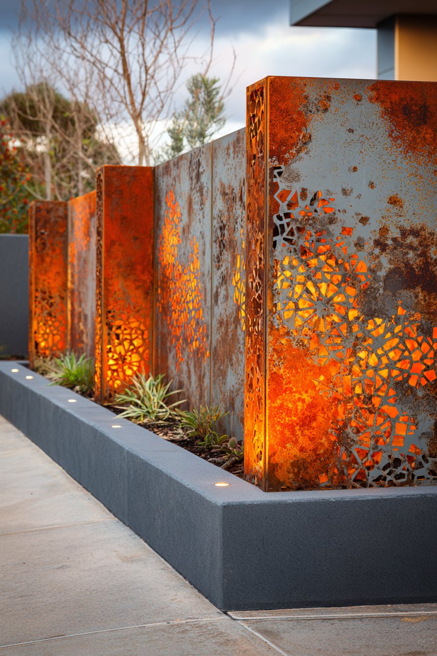 Industrial aesthetic compound walls featuring raw concrete, corten steel perforations, or gabion construction appeal to design-forward homeowners who appreciate materials in their honest, unfinished states. These approaches celebrate utilitarian beauty and authentic material expression rather than concealing construction beneath decorative finishes. The industrial vocabulary of exposed aggregate, visible formwork, weathered steel, and wire cages creates powerful visual impact while often proving surprisingly cost-effective since finishes are minimal or nonexistent. The weathering these materials undergo—concrete developing patina, corten developing protective rust layer, gabion stones settling into stable arrangement—is celebrated rather than resisted, creating walls that improve with age.