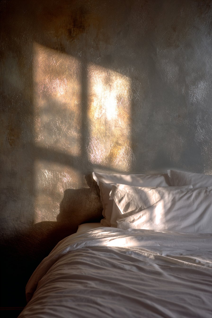 What makes this approach particularly effective is how the metallic gold interacts with natural and artificial lighting throughout the day. Morning sunlight catches the gold shimmer, creating a warm, energizing atmosphere perfect for starting the day, while evening lamplight produces a more intimate, luxurious ambiance. The textured paint surface adds dimensional interest that flat colors simply cannot achieve, with each brushstroke creating subtle shadows and highlights that shift with changing light conditions.