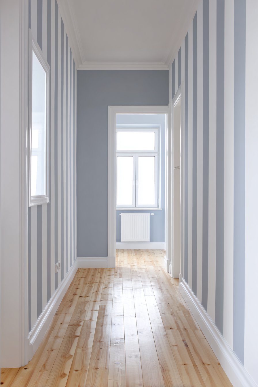 • Map out stripe widths and spacing on graph paper before measuring on walls