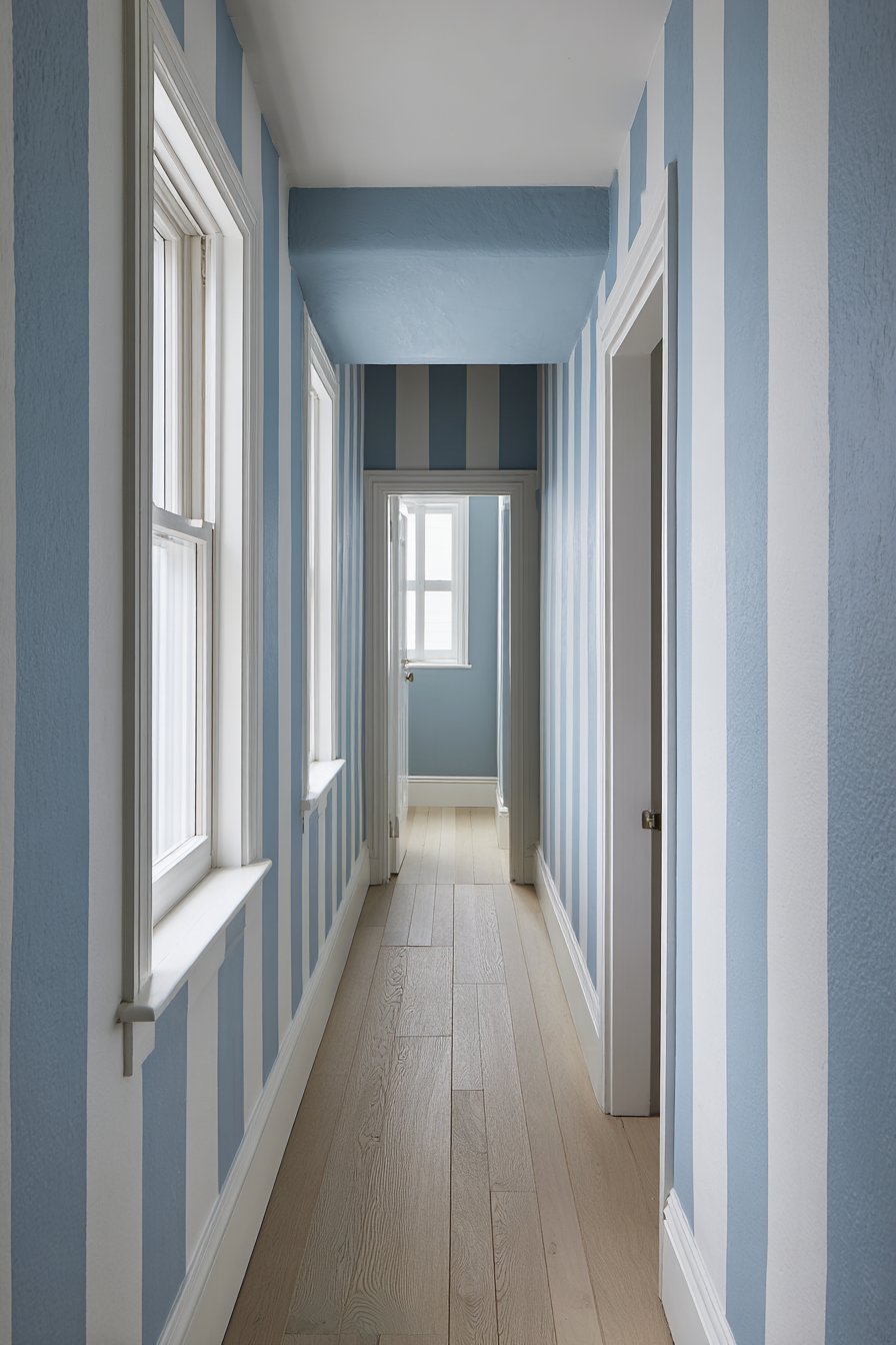 Execution requires precision tools and careful measuring. Painter’s tape becomes essential for achieving clean, sharp lines between colors, though even with tape, proper technique matters. Sealing tape edges with the base wall color before applying the stripe color prevents bleed-through, ensuring professional-looking results. For DIYers, patience and precision prove more important than artistic ability, as the geometric nature of the design demands accuracy rather than painterly skill.