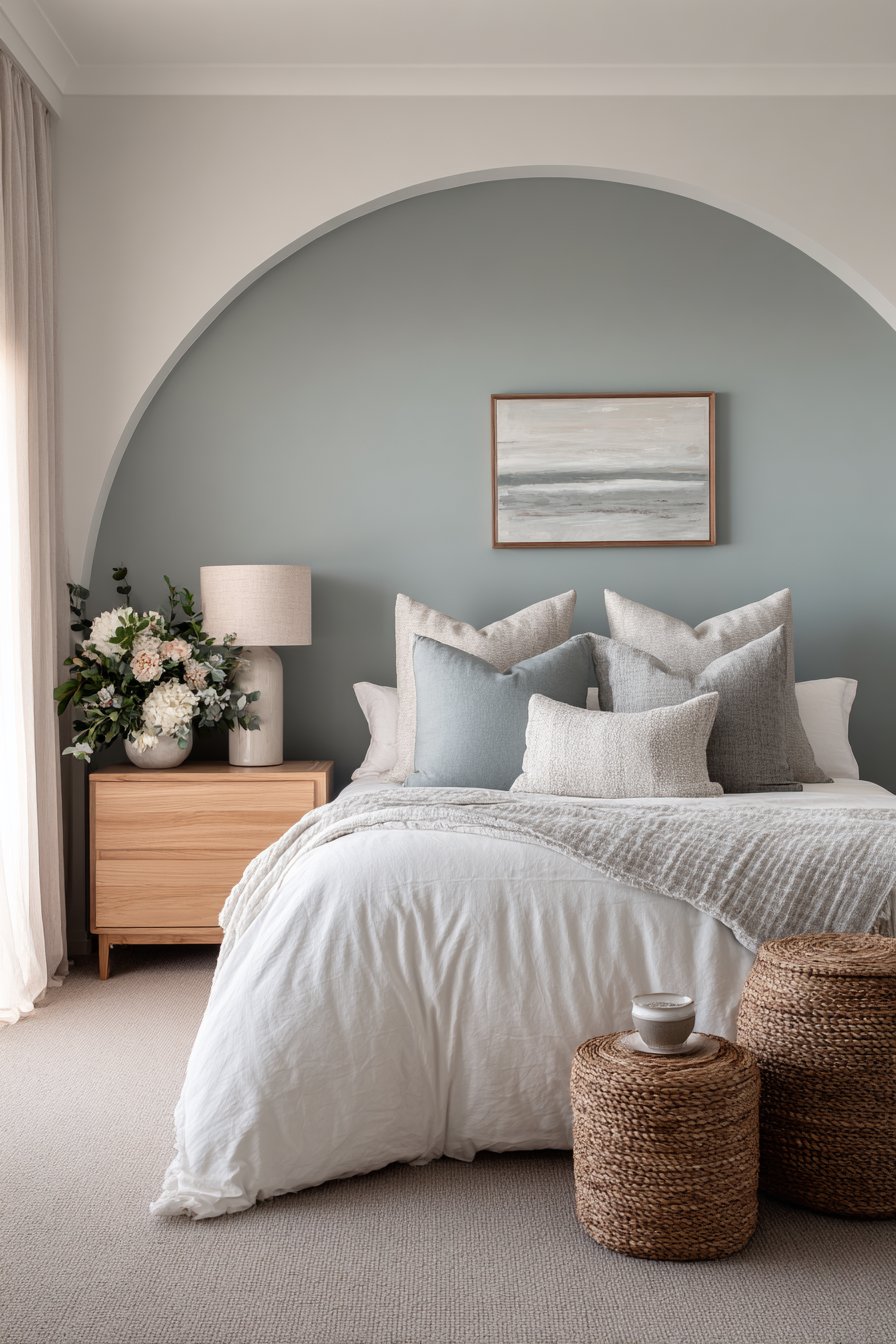 This approach offers practical advantages beyond aesthetics. The painted niche creates natural display zones without installing shelving or consuming floor space with furniture. Objects arranged within the painted area automatically become focal points, allowing even modest decorative items to make significant visual impact within their color-defined frame.