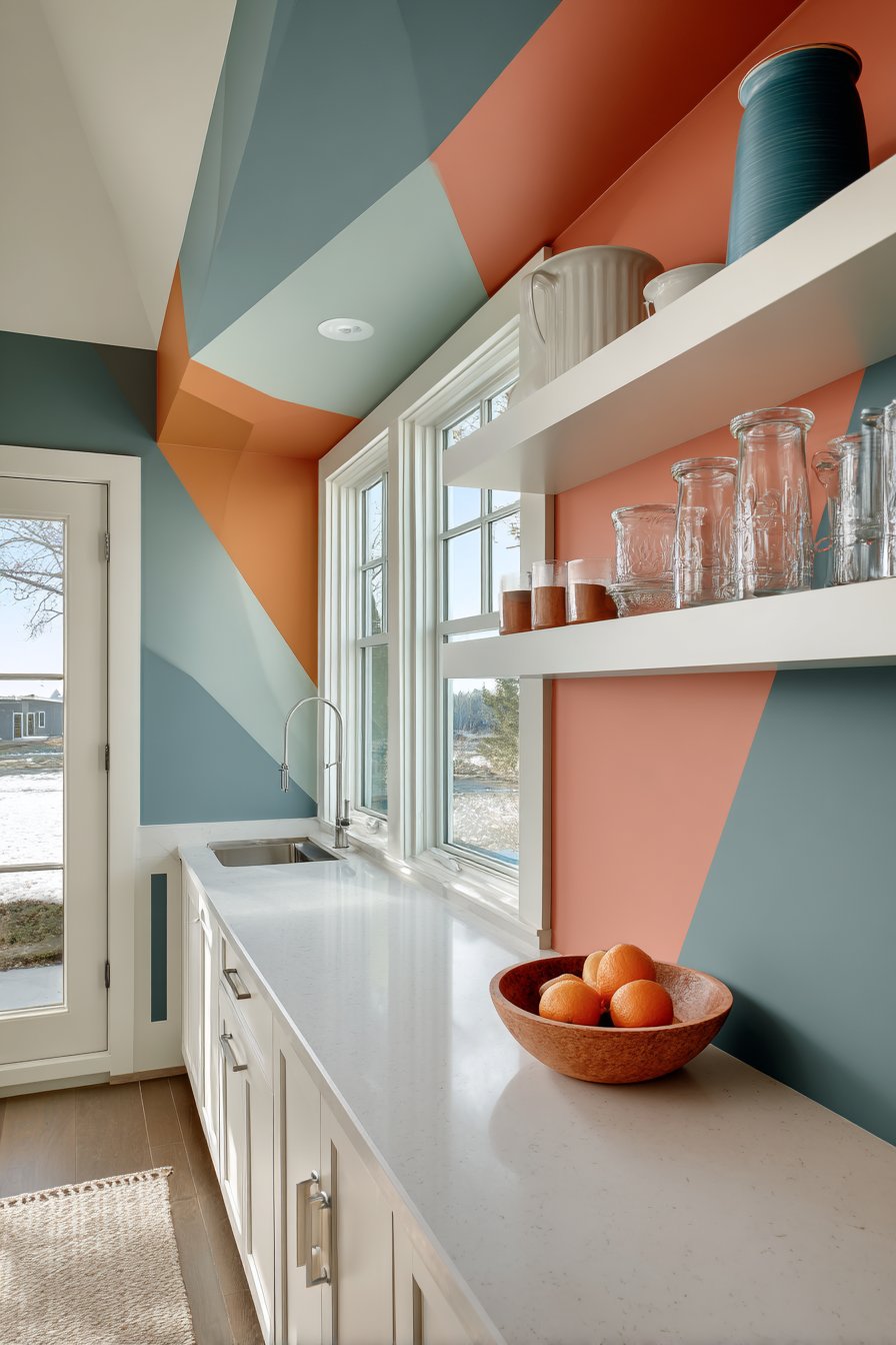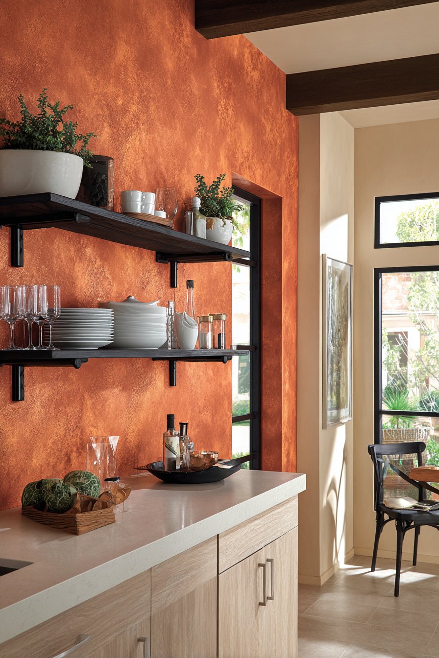 • Use the accent wall to define a specific kitchen zone, such as the display or dining area