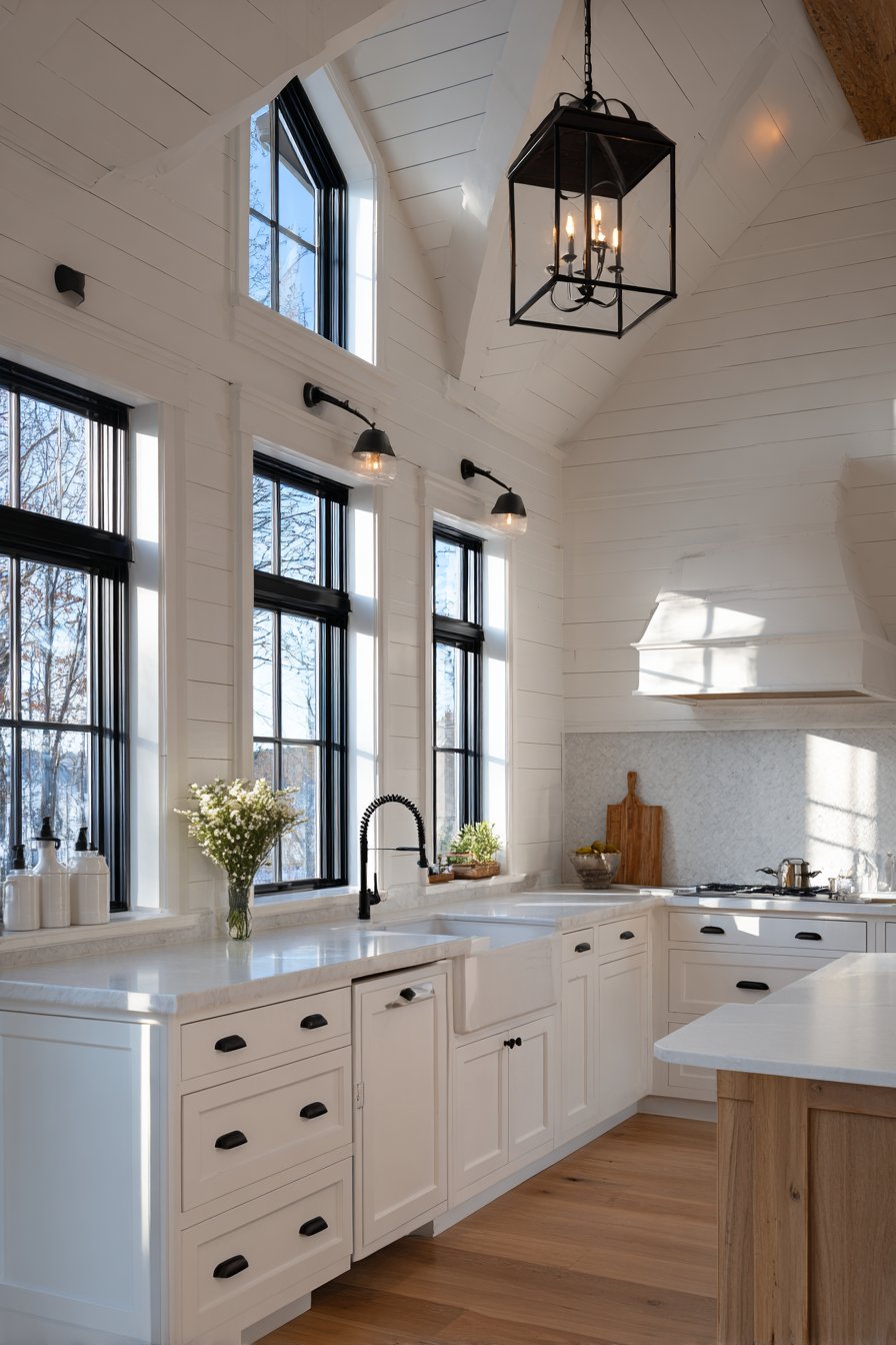 This approach proves particularly valuable in kitchens where actual wood shiplap might suffer from moisture and temperature fluctuations. Painted walls withstand kitchen conditions far better than wood while delivering similar aesthetic impact. The dove gray colorway updates traditional white shiplap with contemporary sophistication while maintaining the light, airy quality essential to farmhouse aesthetics.