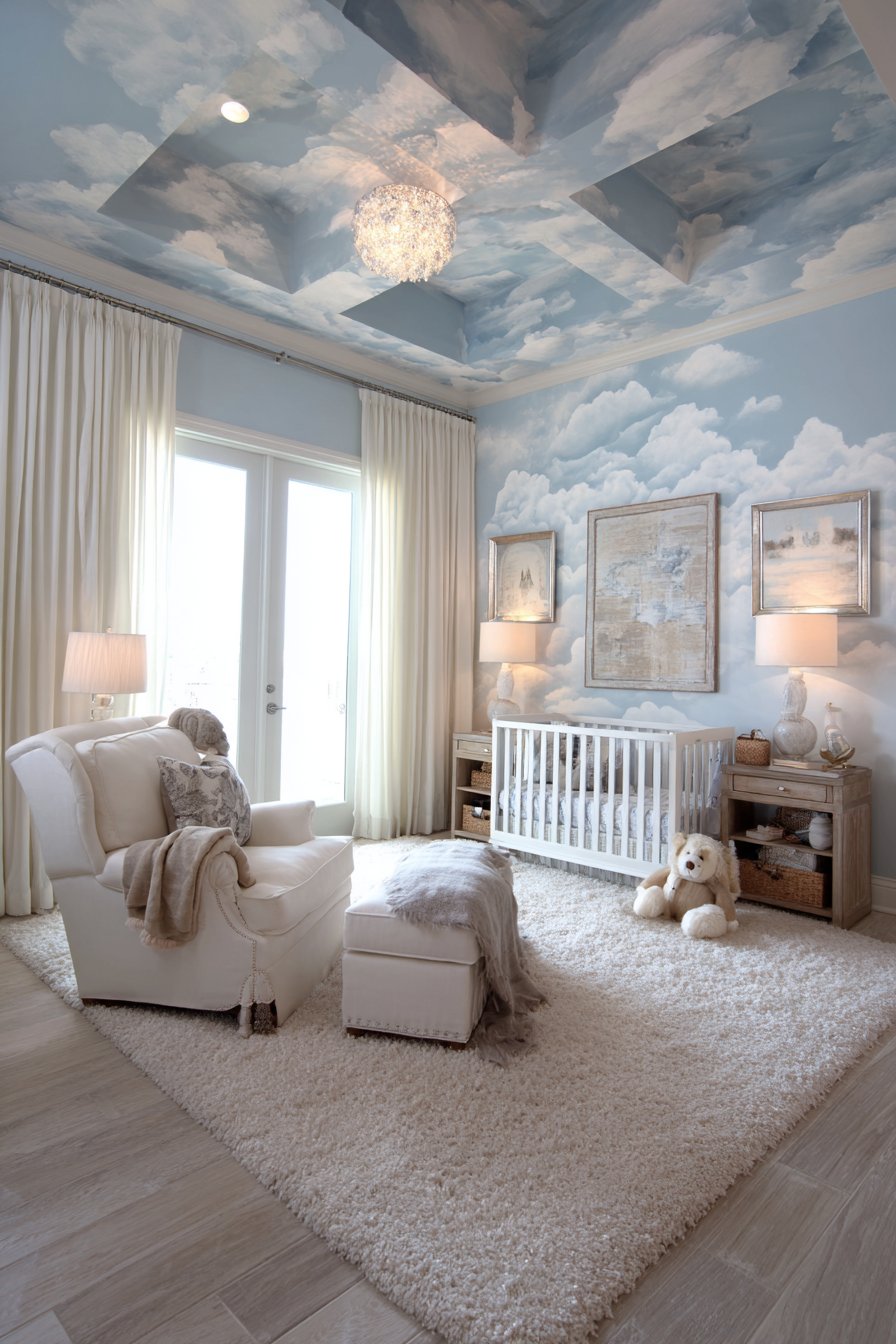 Beyond aesthetics, this painting approach offers practical advantages for nurseries. The soft, nature-inspired imagery creates a calming environment that supports better sleep, while the hand-painted quality adds personal touches that make the space feel specially created for the child. As children grow, cloud patterns remain age-appropriate much longer than character-themed walls, potentially extending the room’s design relevance for several years.