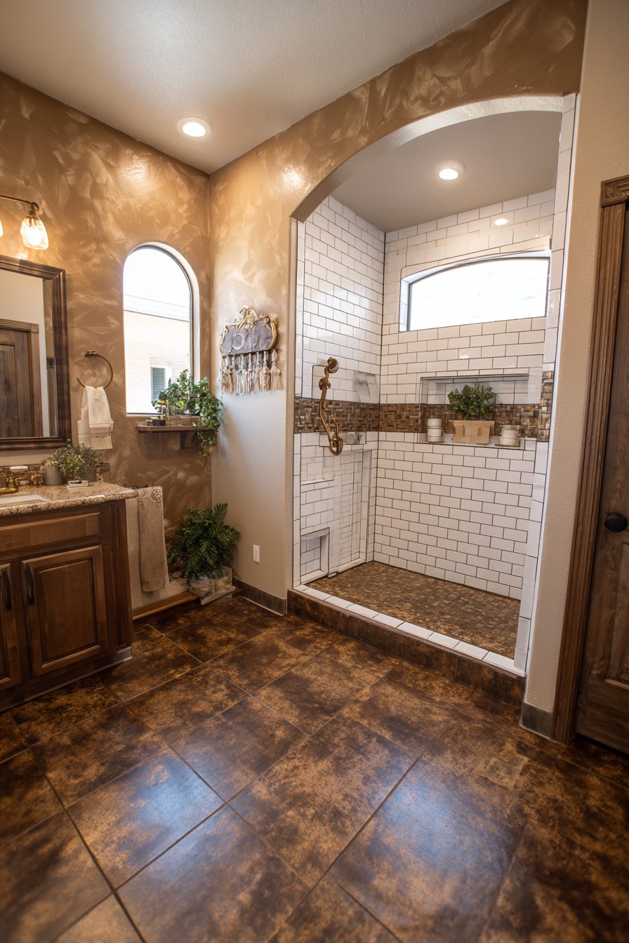 • Coordinate with other warm elements like wood countertops and brass or copper fixtures
