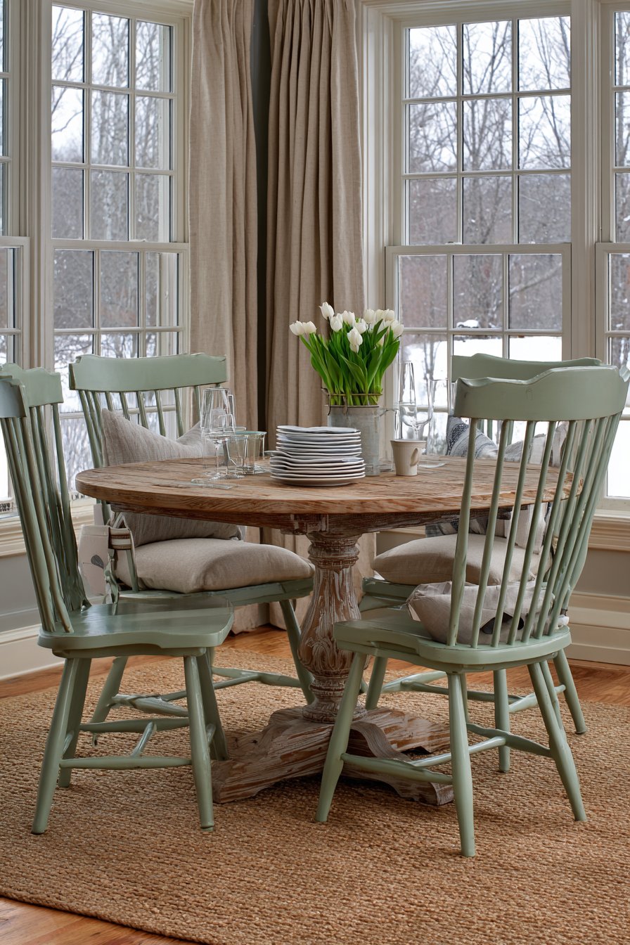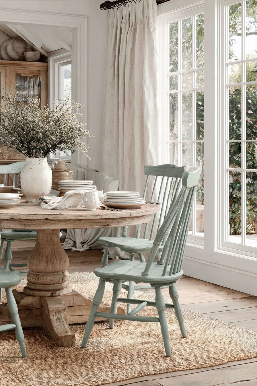 - Choose painted chairs in soft, muted colors rather than bright hues to maintain cottage authenticity