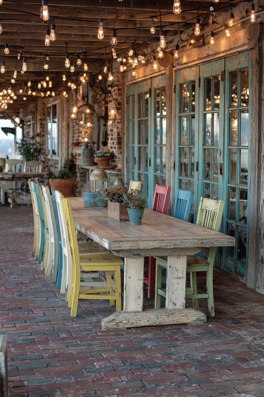 - Source mismatched antique chairs from estate sales and flea markets for authentic cottage character