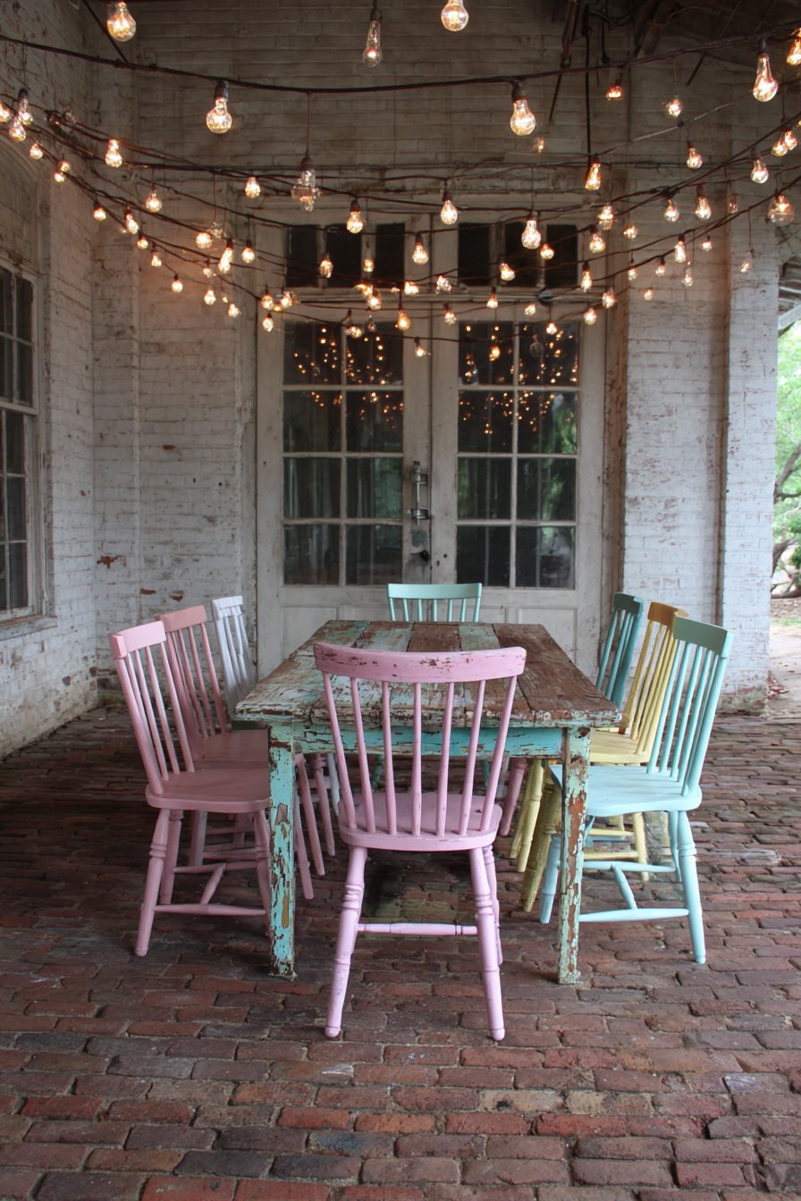- Paint mismatched chairs in colors from the same tonal family for cohesion despite variety