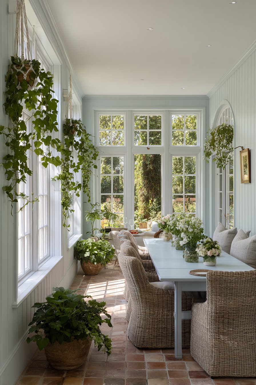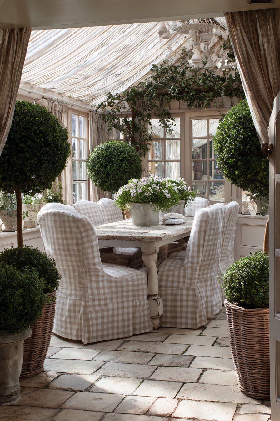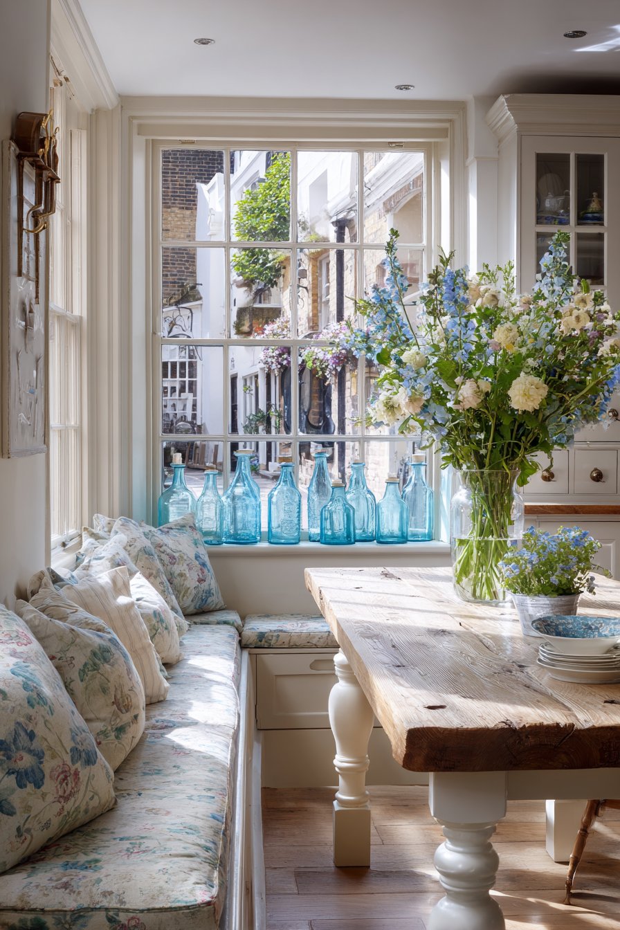 The connection to nature maintained throughout these cottage dining rooms—through abundant windows, fresh flowers, potted herbs, botanical prints, and natural materials—enhances wellbeing and creates life-filled spaces. This biophilic approach recognizes humans’ innate connection to the natural world and designs environments that support this relationship. The changing seasons become part of the interior experience through shifting light patterns, seasonal flowers, and views to gardens and landscapes.