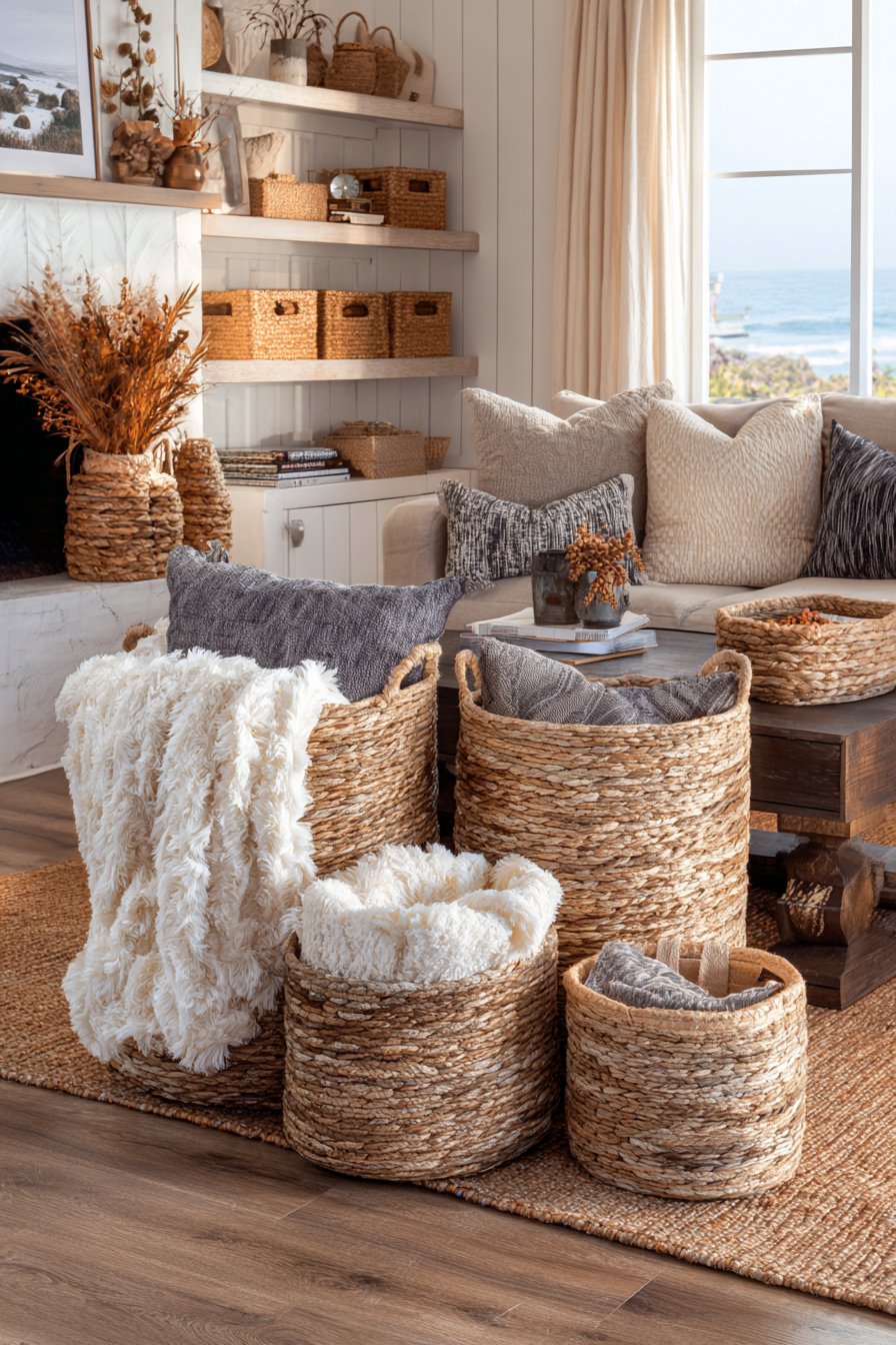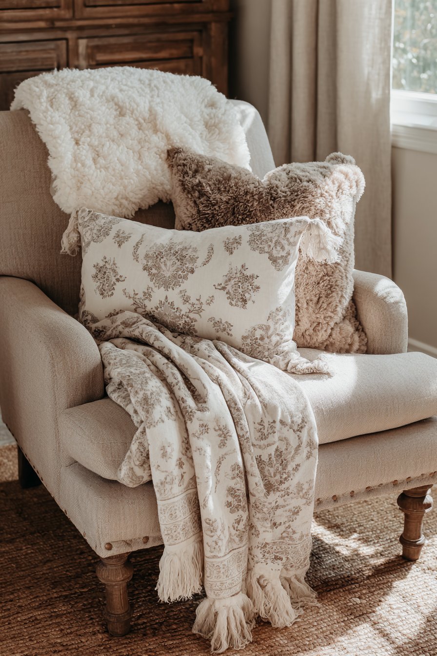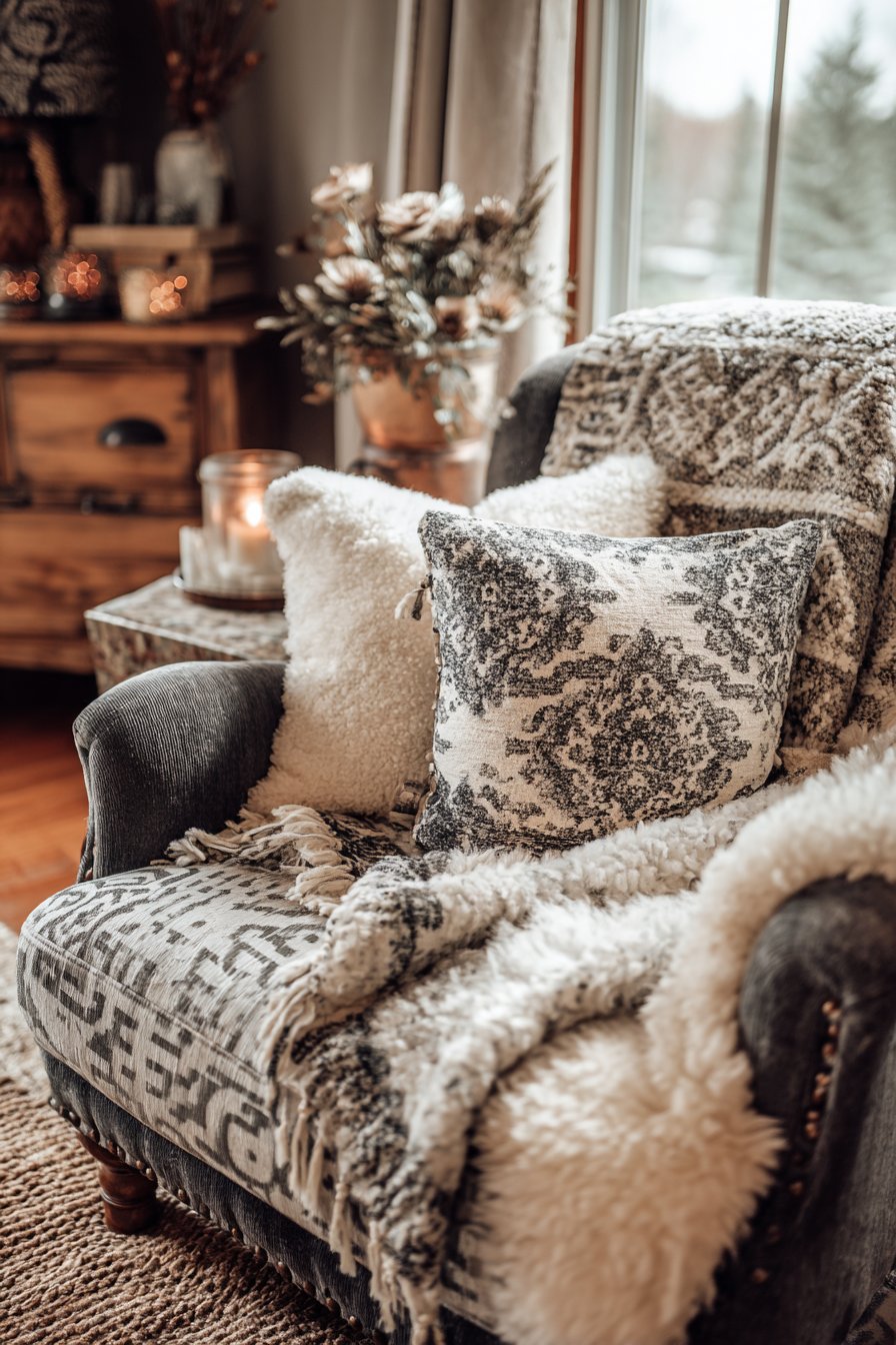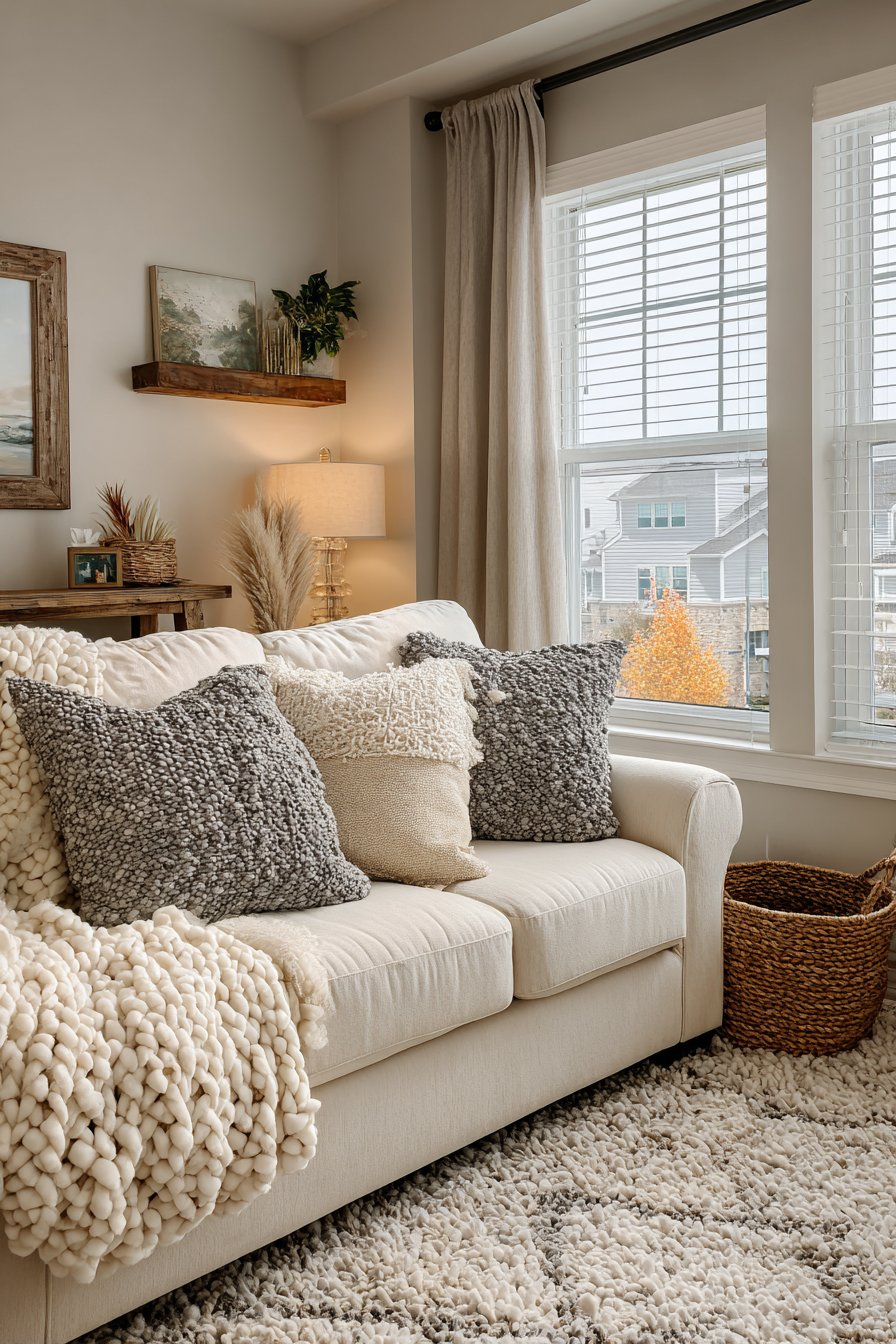 - Keep a basket or ottoman nearby for storing throws, creating easy access to comfort layers