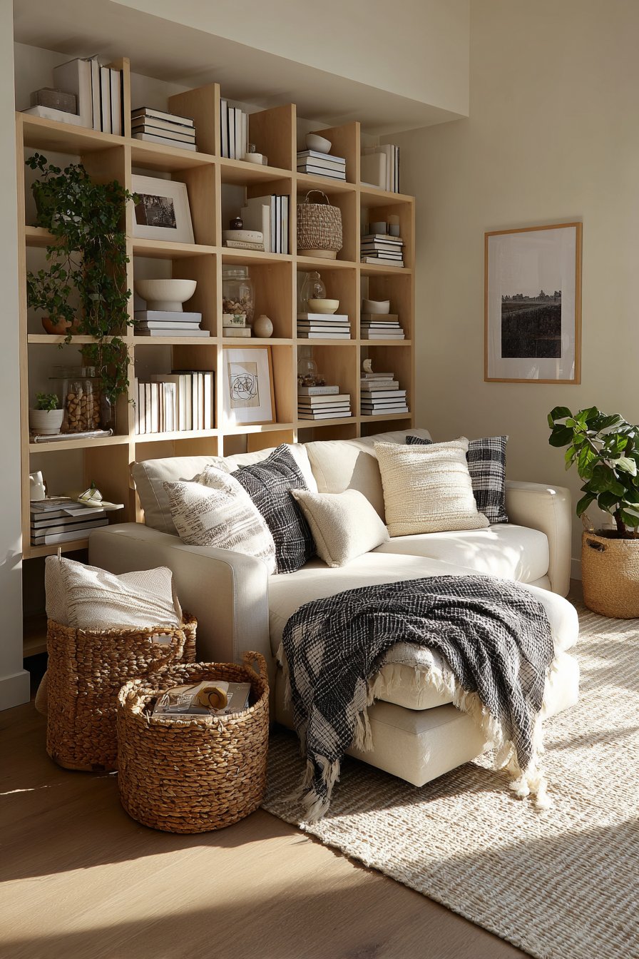 Storage solutions integrated throughout these ideas address a practical reality: cozy rooms are used and enjoyed, which means they accumulate the items that make life comfortable. Rather than treating storage as an afterthought, these designs incorporate beautiful baskets, built-in shelving, and multi-functional furniture that keep everyday items accessible while maintaining visual calm. This approach acknowledges that real coziness requires both beauty and practicality—a room can look perfect in photos but feel uncomfortable if there’s nowhere to store the blankets you actually use or the books you’re currently reading.
