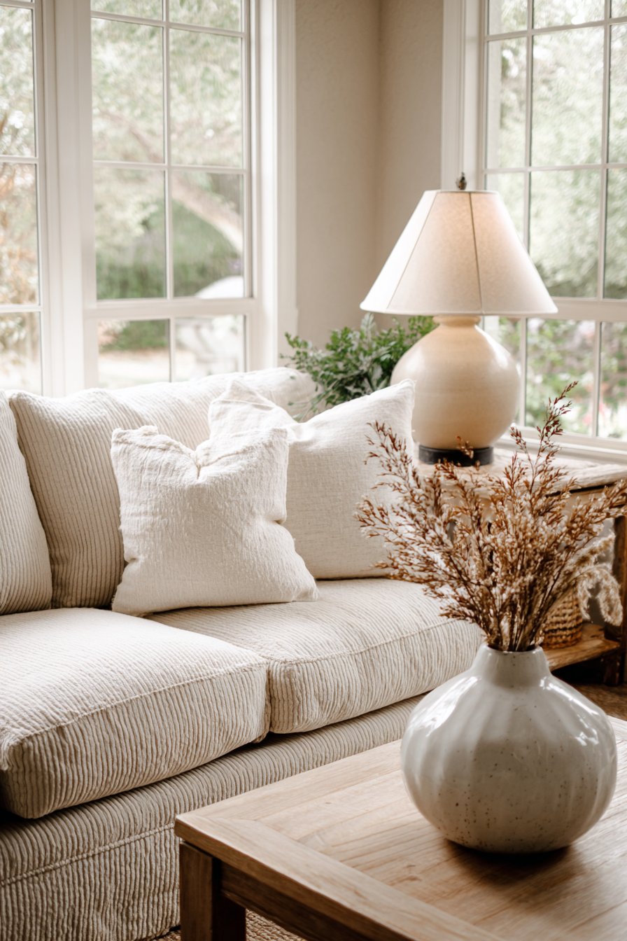 - Update seasonal elements like flowers or throw colors to keep the space feeling fresh