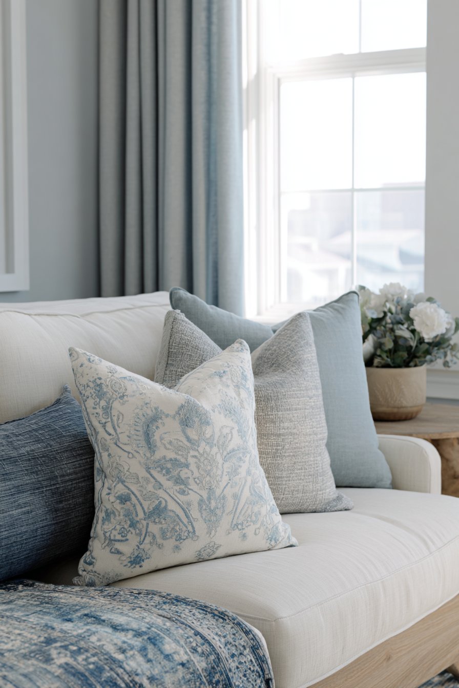 - Balance cool color schemes with warm wood tones and neutral fabrics