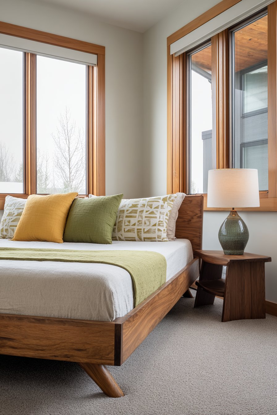 - Keep bedding and accessories minimal to showcase the wood’s natural beauty