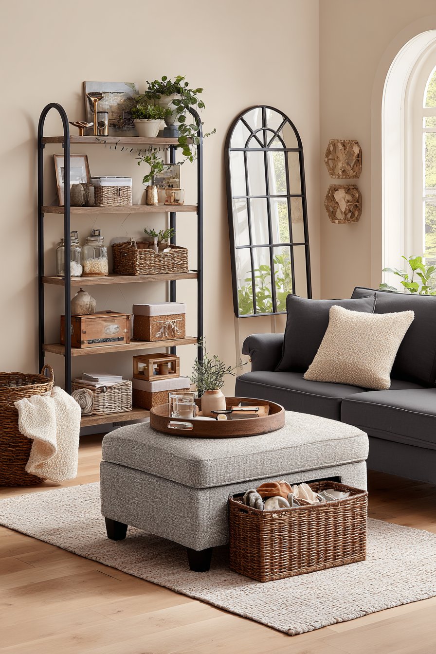 Storage integration proves essential across every design, recognizing that apartment living demands creative solutions for belongings. From built-in storage beneath daybeds and inside ottomans to decorative baskets and boxes that conceal clutter while enhancing aesthetics, these designs demonstrate that organization and beauty must coexist. The best apartment living rooms keep daily necessities accessible yet invisible, maintaining the cute aesthetic while accommodating real life.