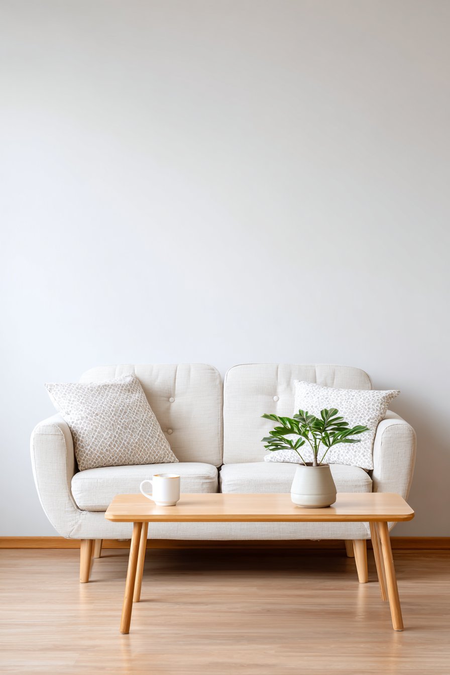 This calming living room demonstrates the power of minimalist design to create peaceful, uncluttered spaces that serve as sanctuaries from busy urban life. The streamlined two-seater sofa in oatmeal linen features clean lines and wooden block legs that elevate it slightly off the floor, creating visual lightness while making cleaning underneath easier. The linen’s natural texture and neutral color provide subtle visual interest without the distraction of bold patterns or colors, allowing your mind to rest and reset.
