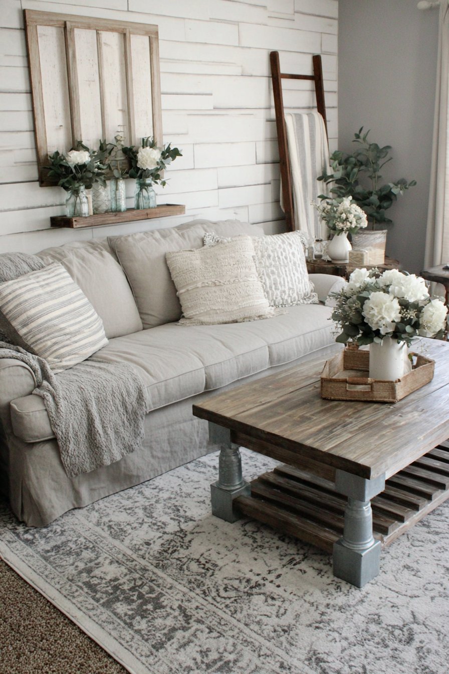 23. Modern Farmhouse Linen and Distressed Wood