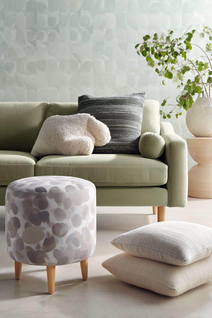 A nesting ottoman set in complementary grey fabric offers incredible versatility—use them together as a coffee table, separate them for additional seating when guests arrive, or tuck the smaller pieces away when you need to maximize floor space for activities like yoga or play. This flexibility is crucial in apartment living where your needs change throughout the day and week. The peel-and-stick removable wallpaper featuring a subtle geometric pattern transforms one wall into an accent feature without the permanent commitment or damage concerns that typically plague renters.