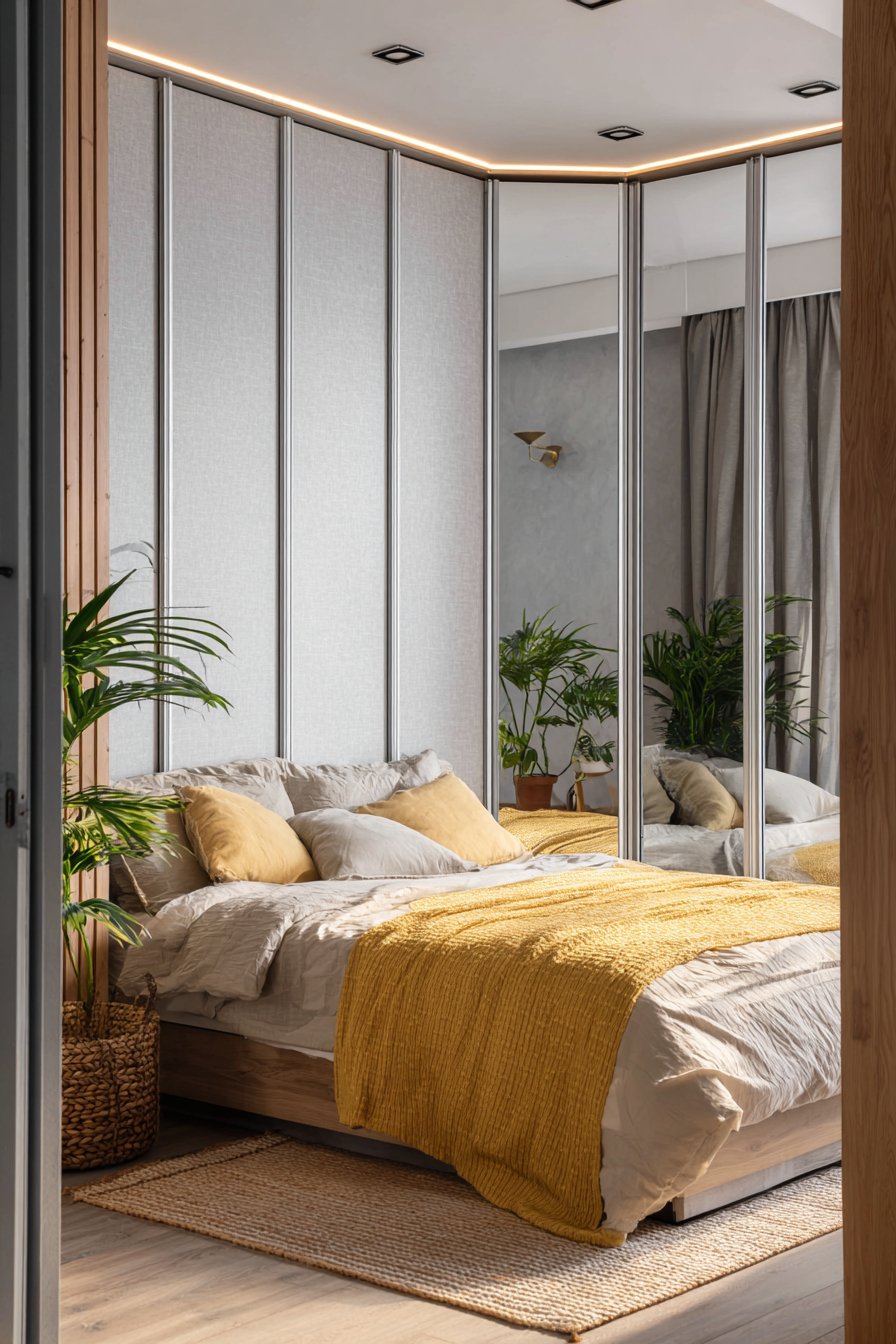 - Balance sleek mirror design with textured bedding and soft furnishings