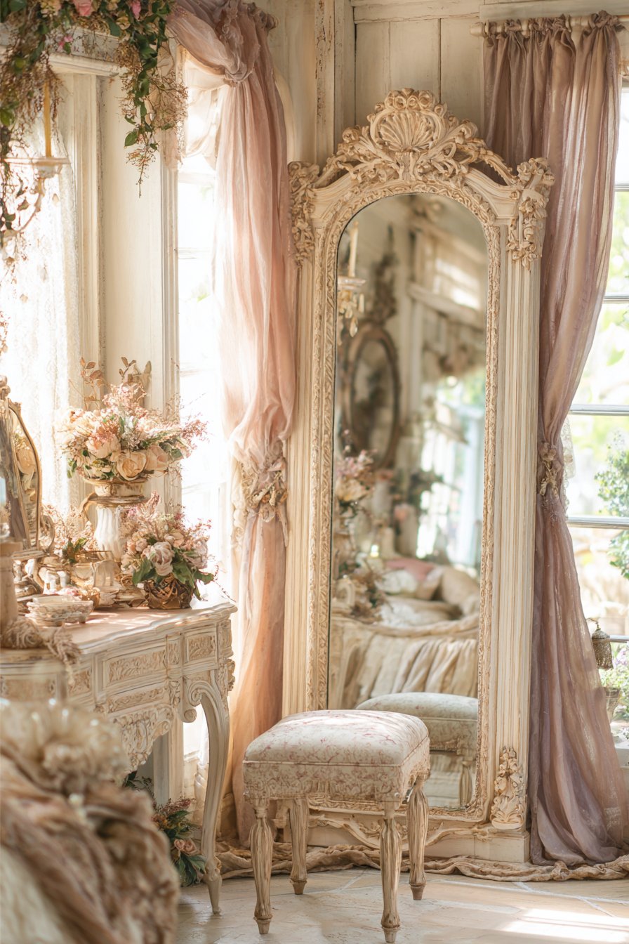 This dressing mirror idea for bedroom spaces appeals to those who see beauty in age, who value history over novelty, and who believe rooms should evolve organically through collected treasures rather than coordinated purchases. It’s a style that requires patience—you can’t rush patina or instant-age authenticity—but rewards with spaces full of charm, warmth, and genuine personality.