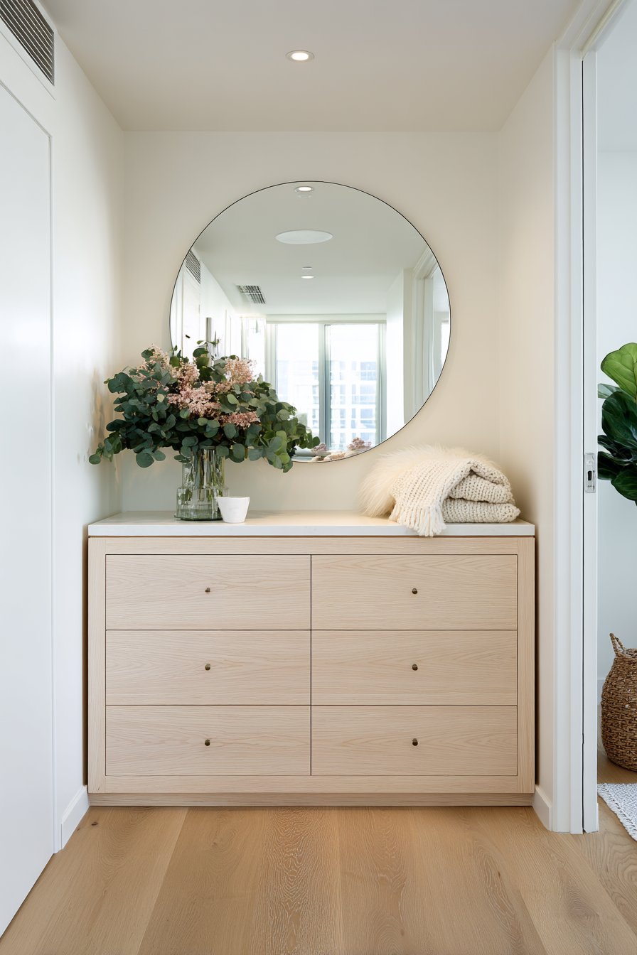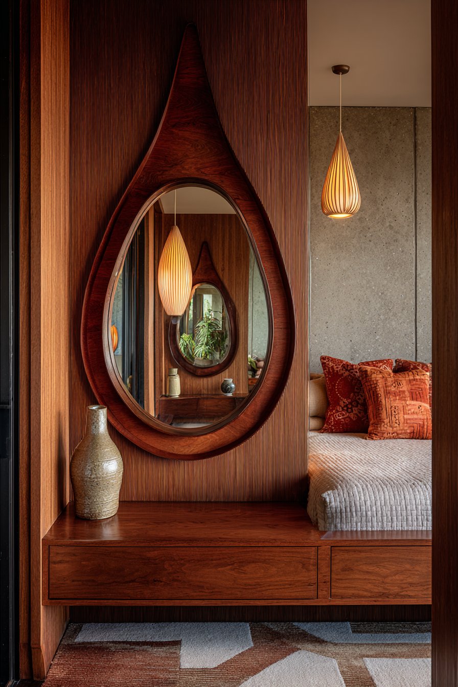 - Embrace round or irregular mirror shapes for organic, flowing aesthetics