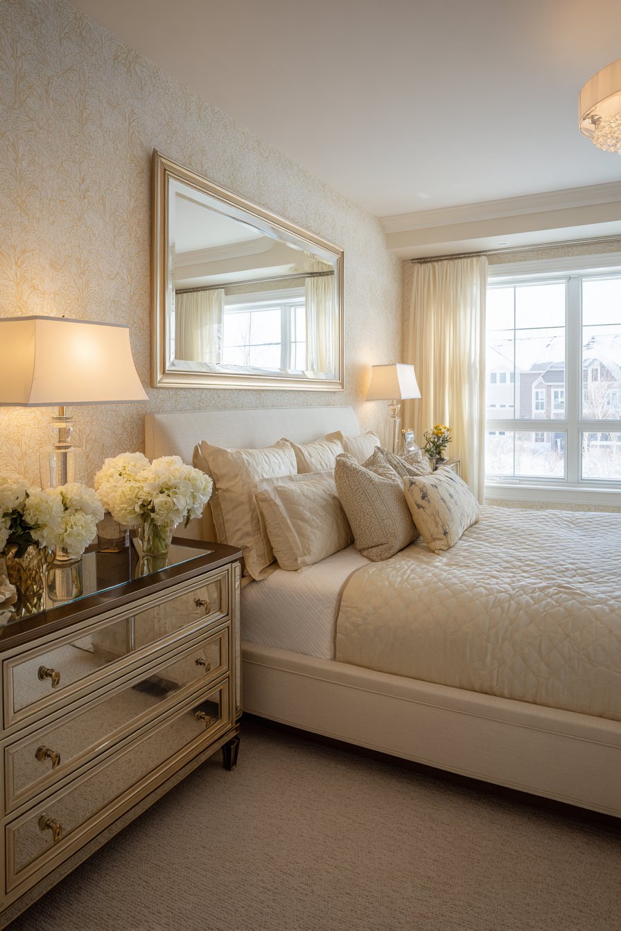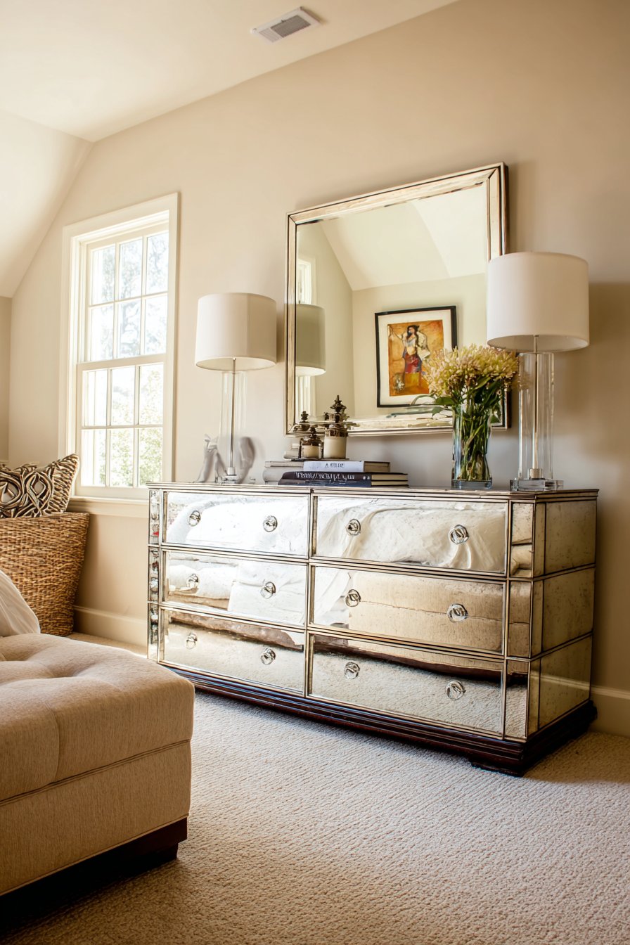 - Select oversized mirrors for dramatic impact in larger bedrooms